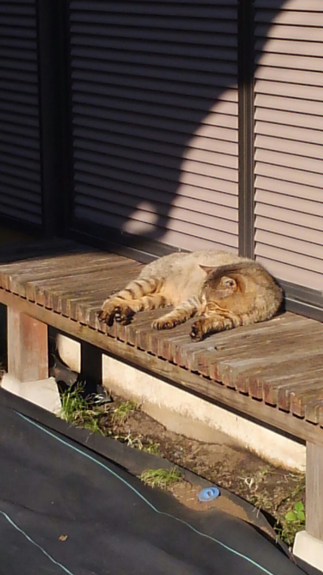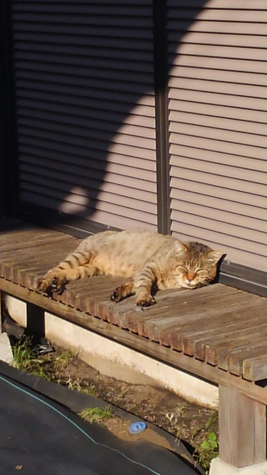 お顔の大きなおじいちゃん?猫が縁側で日向ぼっこをしていました。
