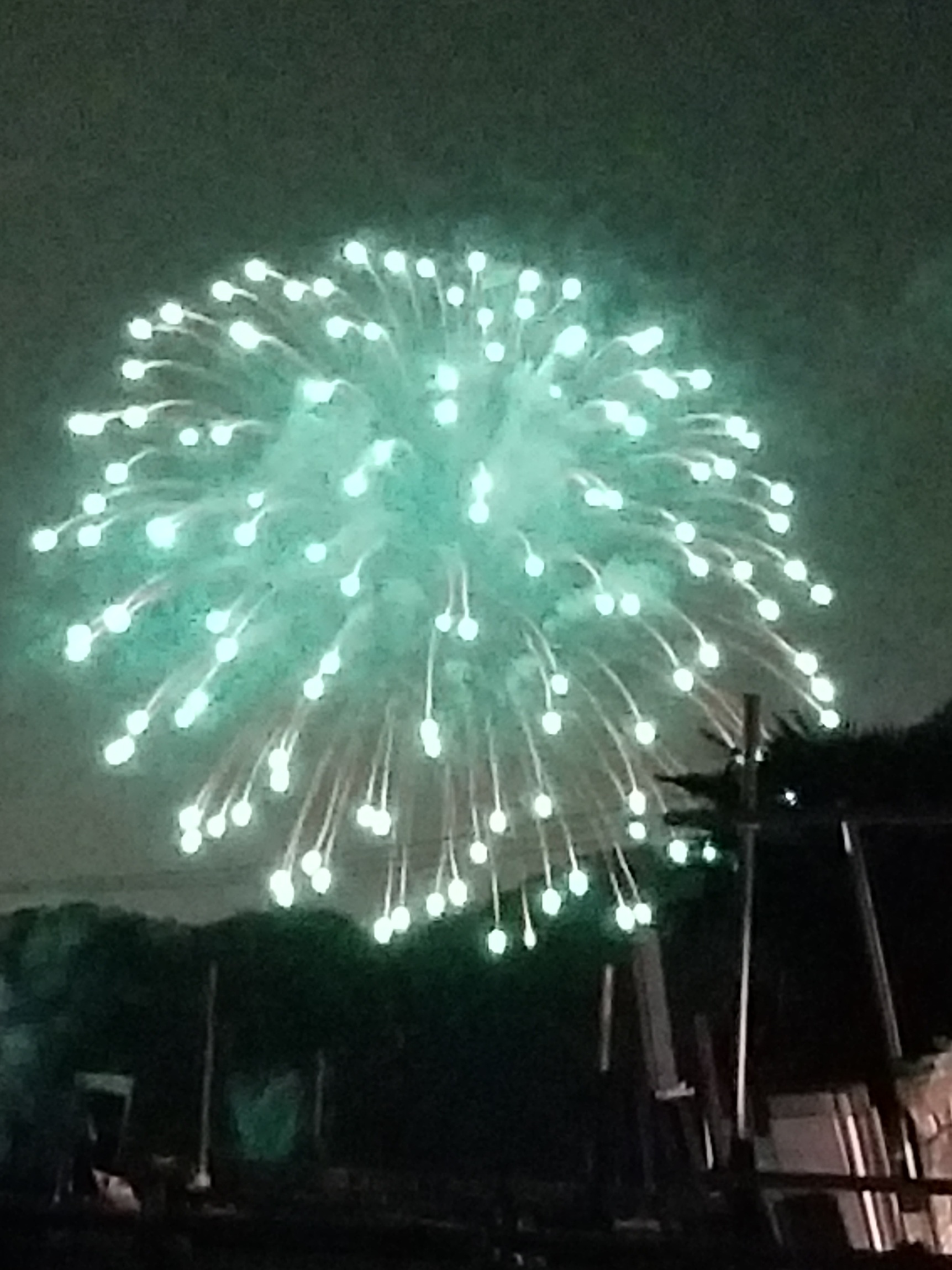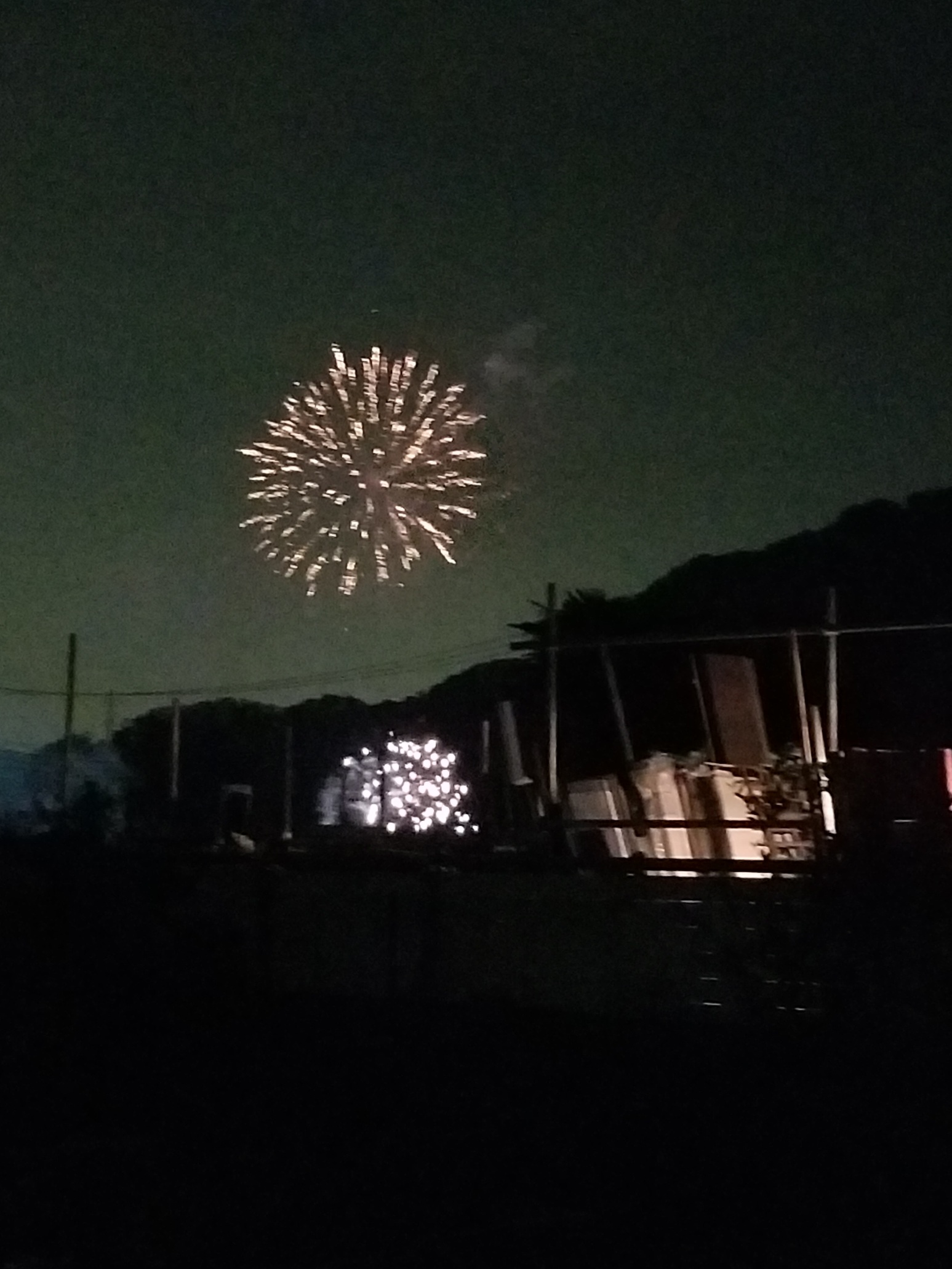 ここに引っ越してきて初めての秋、こんな見事な花火が家にいながらにして見られて驚きでした。