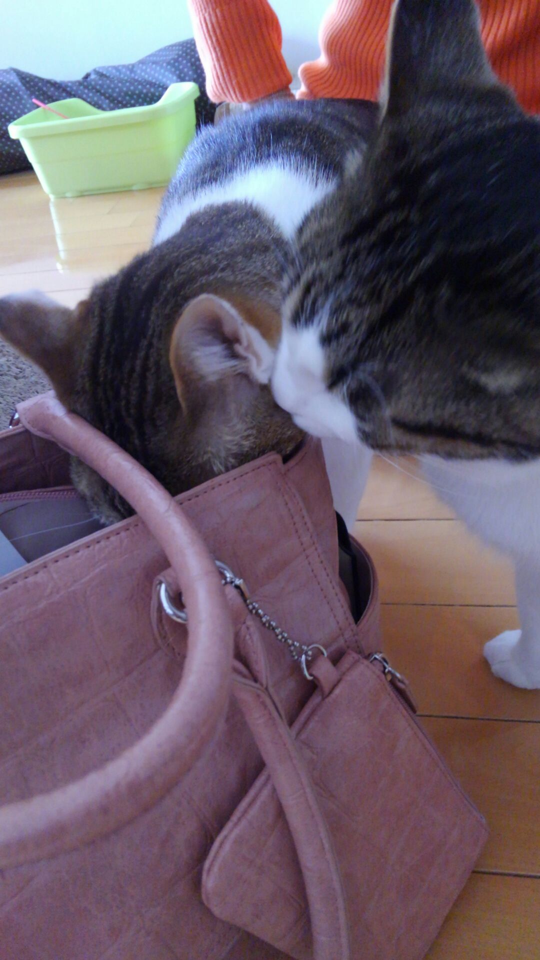 二人で私のカバンをくんくん、興味津々です。