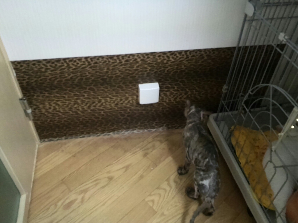 さあ大変。凶暴子猫用のゲージを出してトイレと水とご飯の用意。