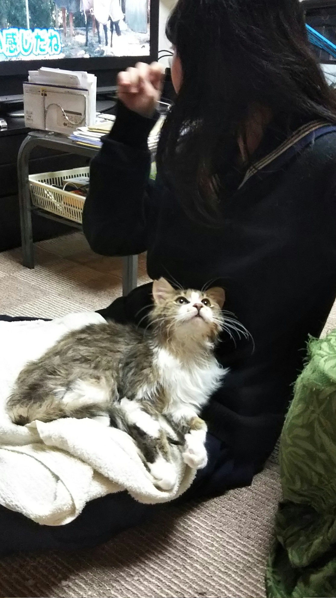 ちゅーるを手から食べたりといい感じ❤になついてきています。