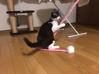 幼児のように遊んで甘えての可愛こちゃん、里親様は16年前にもこちらの保護猫を家族にしてくださいました。