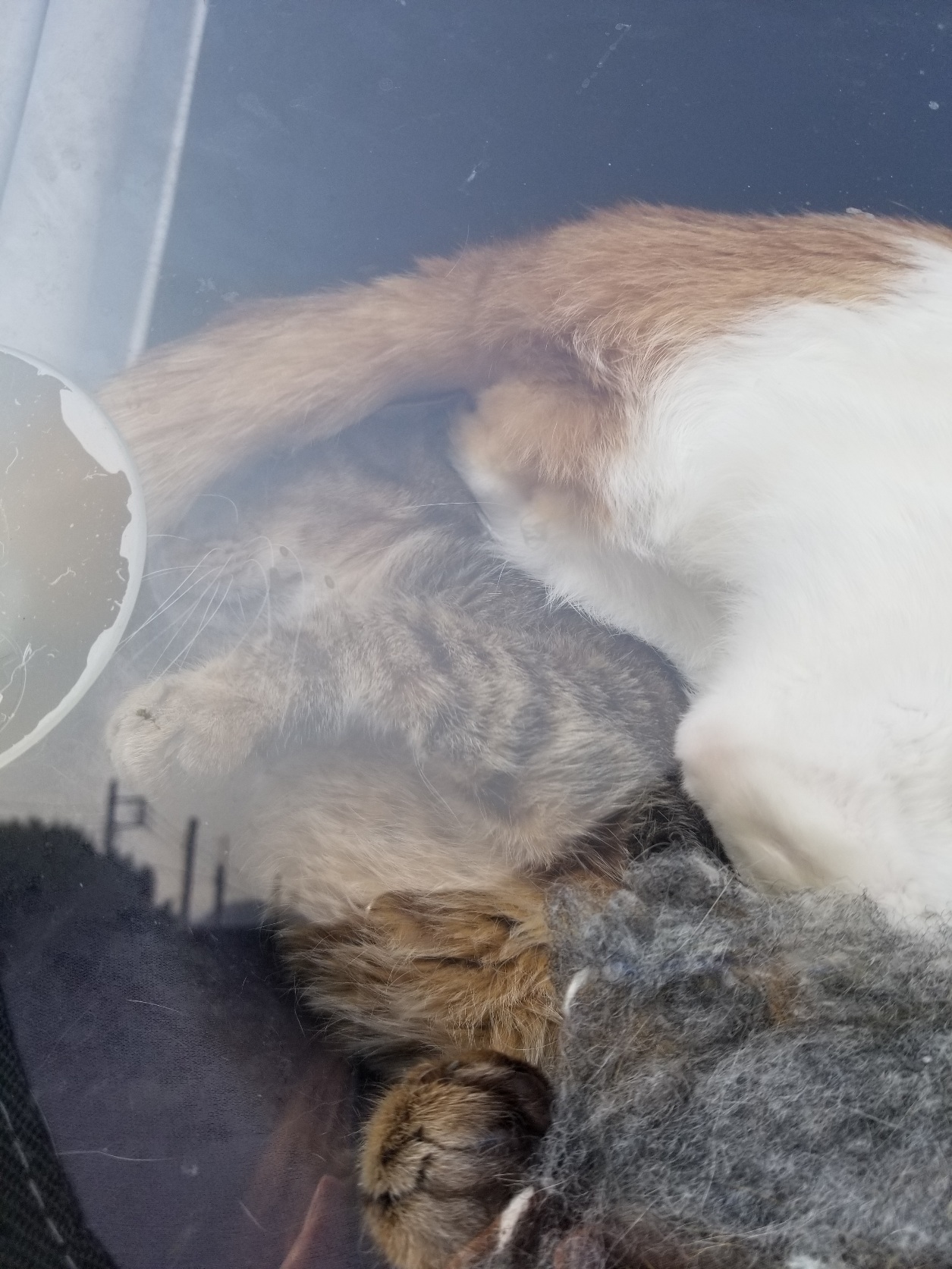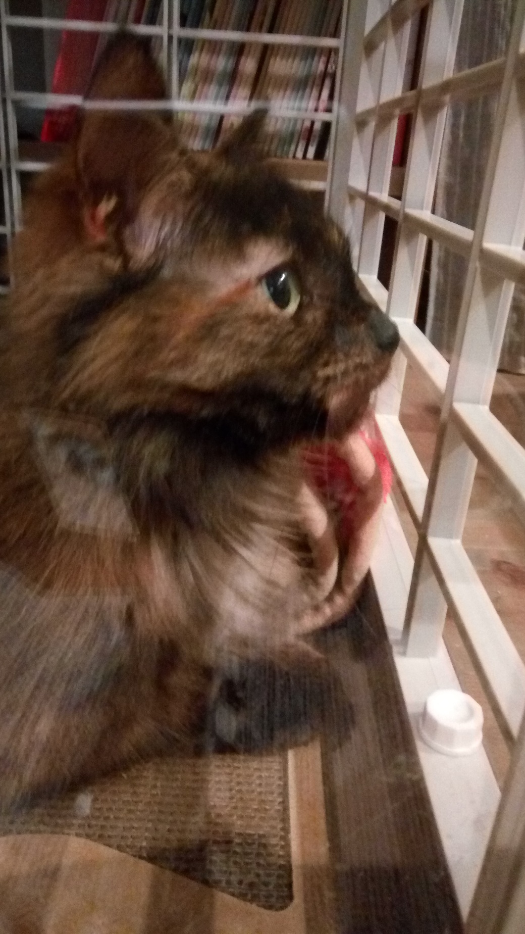 吸盤でガラスについているので落っこちないかハラハラですが、当にゃんたちは