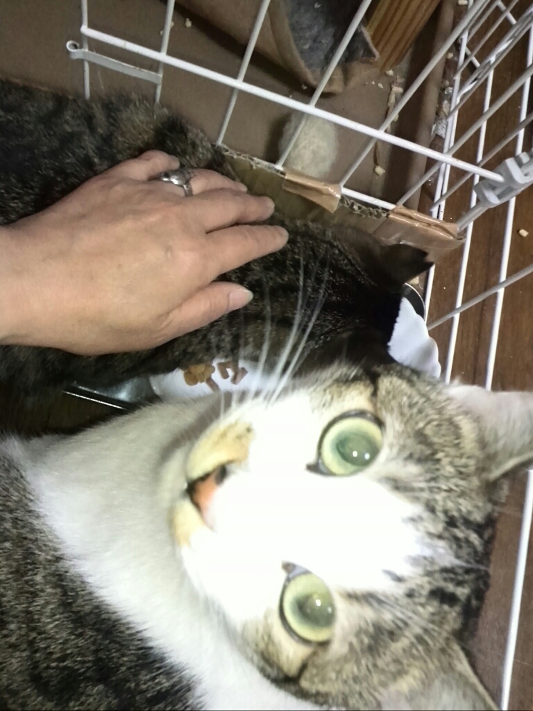 あんなに逃げ回り人を怖がりだった子が、怖いのを我慢して触らせてくれたみるちゃん。