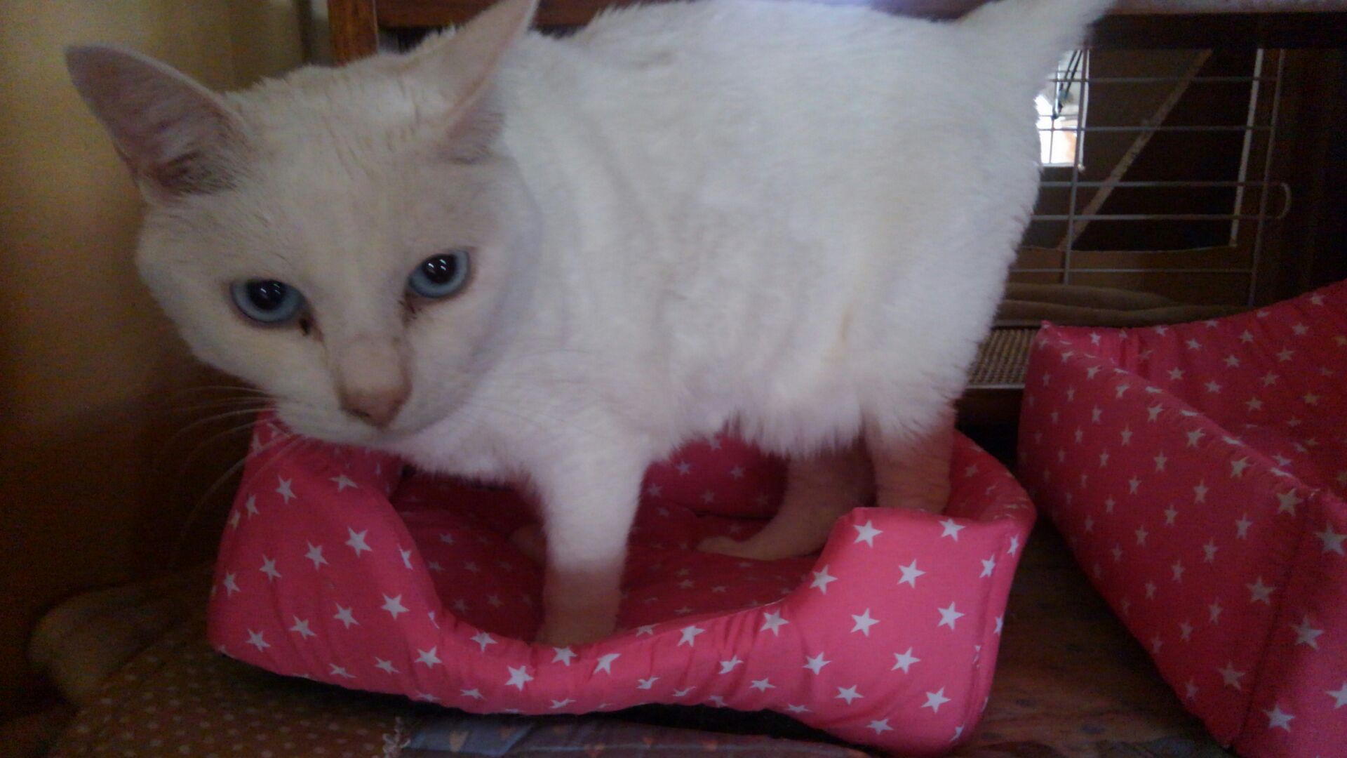 猫たちのベッドは薄汚れてくたくた。新しいのが届くと