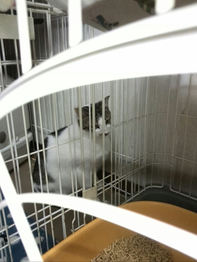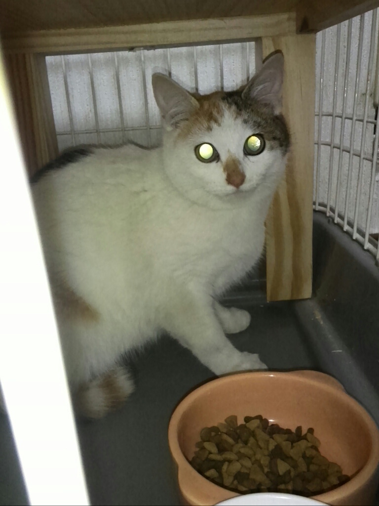 市内の某所にかなりの猫たちがいて一斉捕獲に避妊去勢手術をしていて、そこに人に馴れた若い可愛い子がいてリリースするには忍びなく、里親さんを探したいと。
