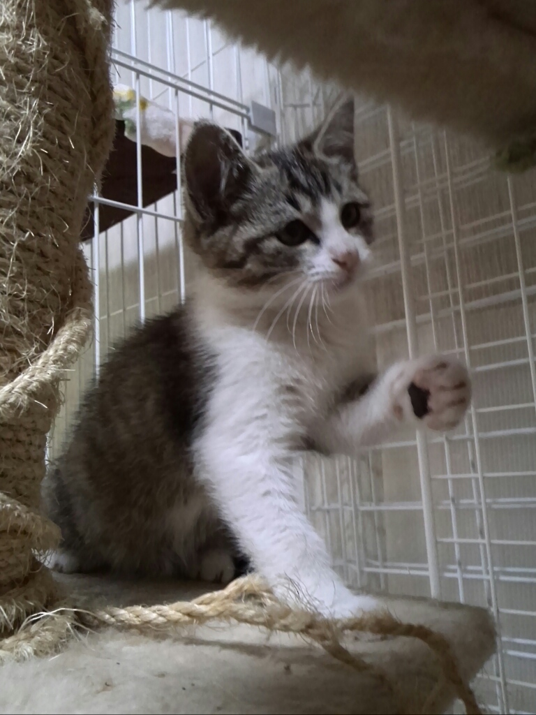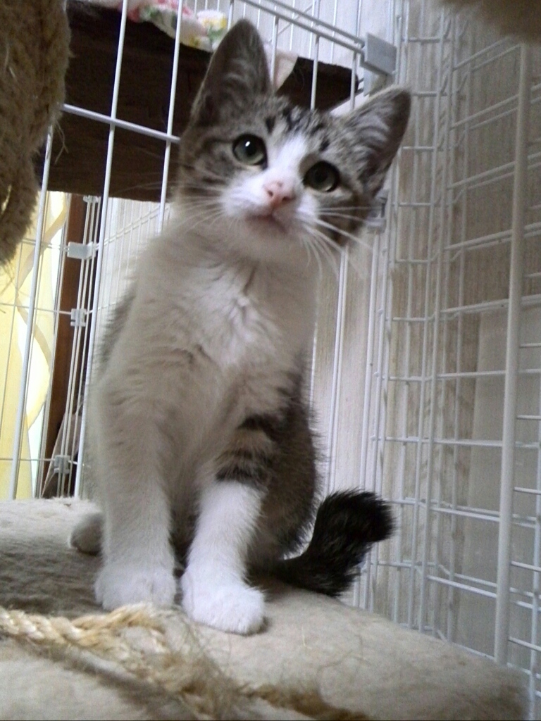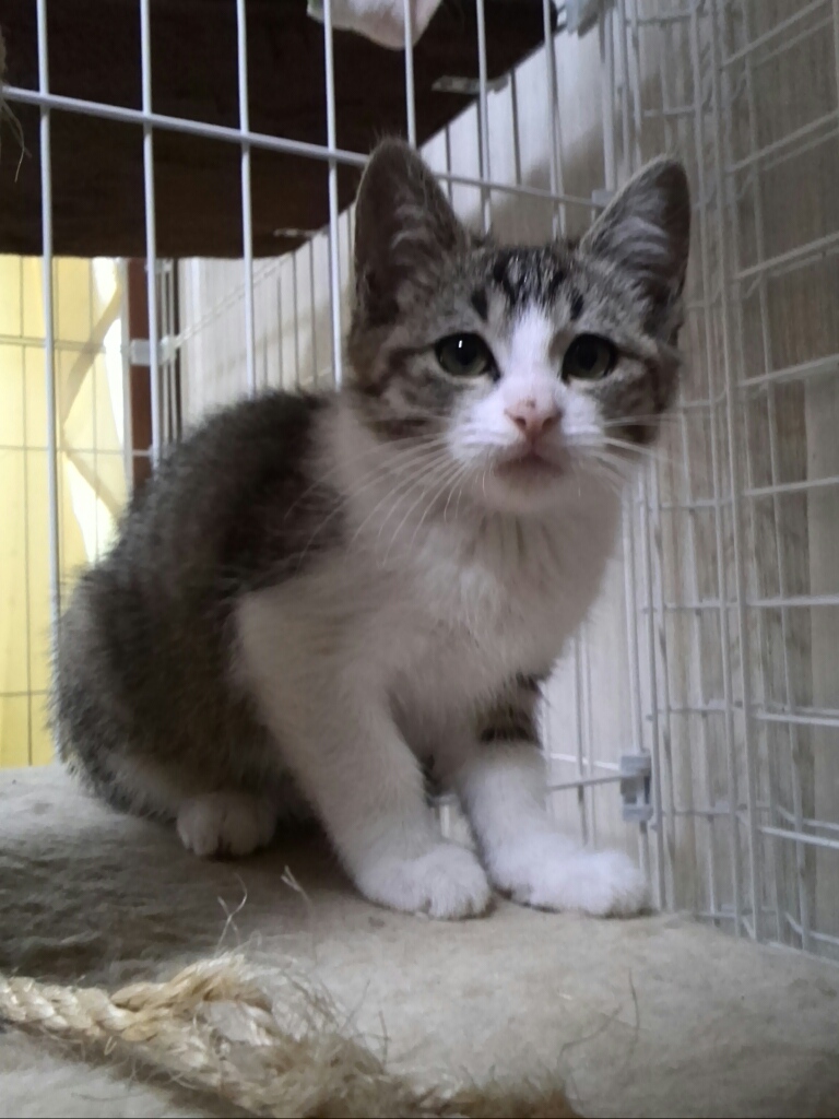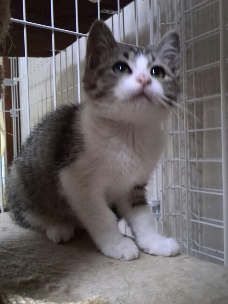 市内の某所でママと野良さん生活をしていましたが、えさやりさんが行く末を見かねて市の相談会に行き捕獲した子猫です。