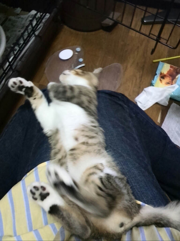まだカラーは付けていますが、朝晩のご飯タイムのあとはカラーを外して膝の上で甘えてから