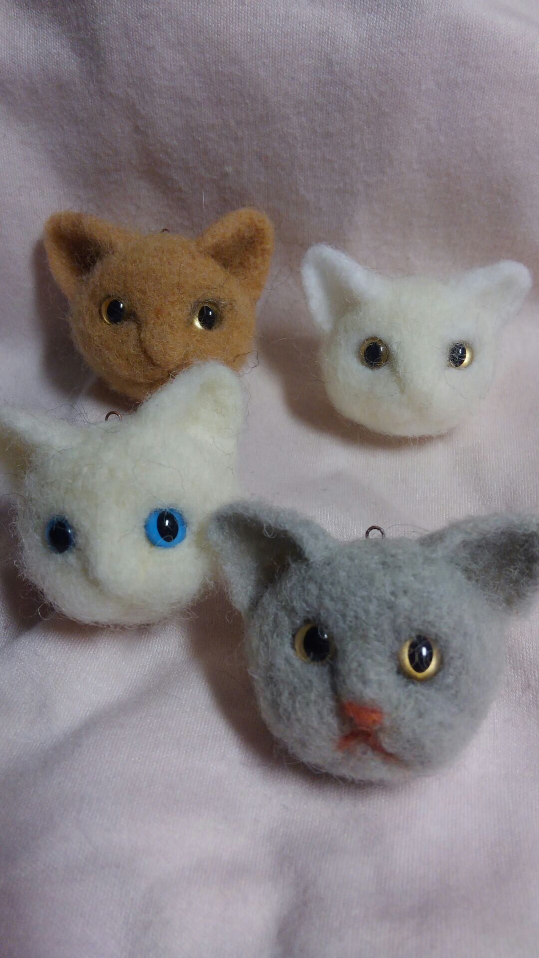 フェルト猫たちのおひげも無事2匹分取り付け完了しました。