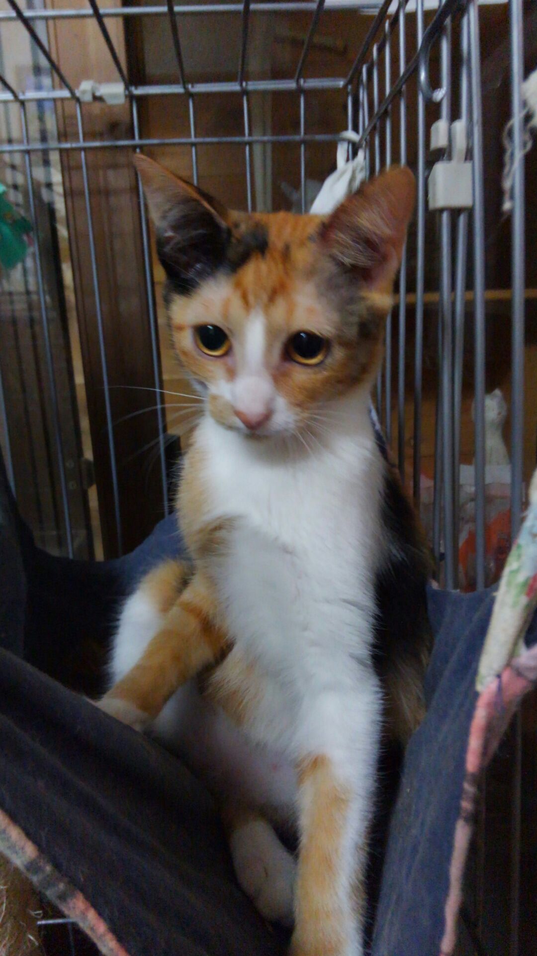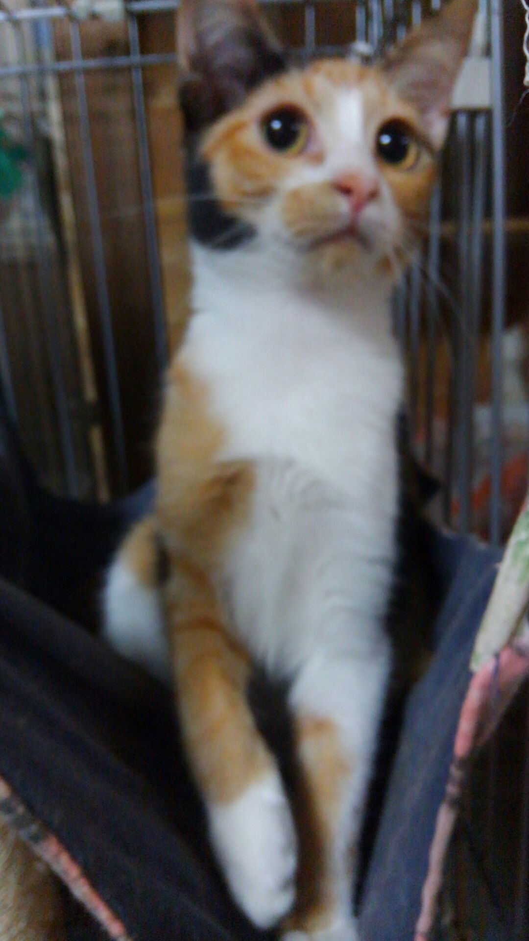 二人で走り回ってから「ハウス!」と私の掛け声で・・・とわんちゃんのように指令を出してゲージに戻る訓練をしています。