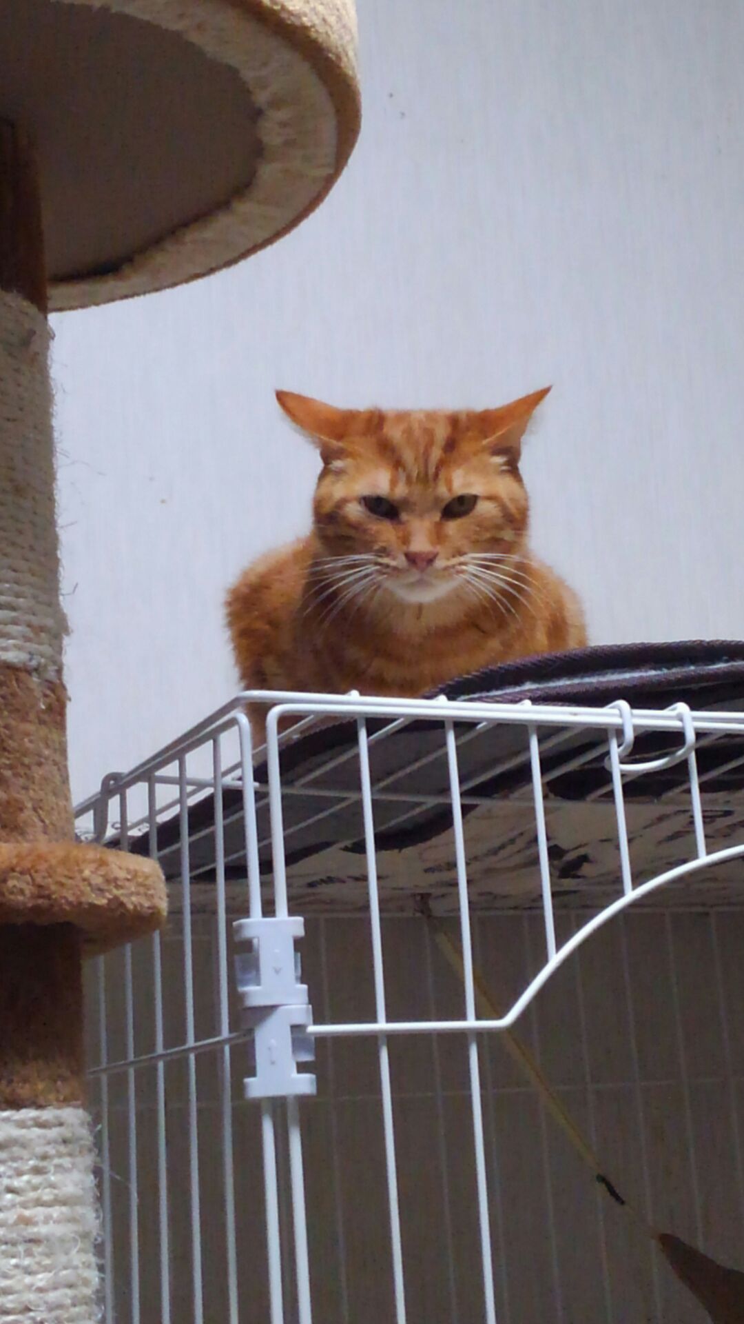 扉を開けてフリーになったゲージから時々出て小屋裏に遊びに行ったりしています。