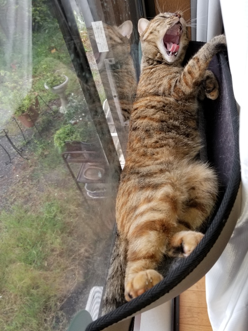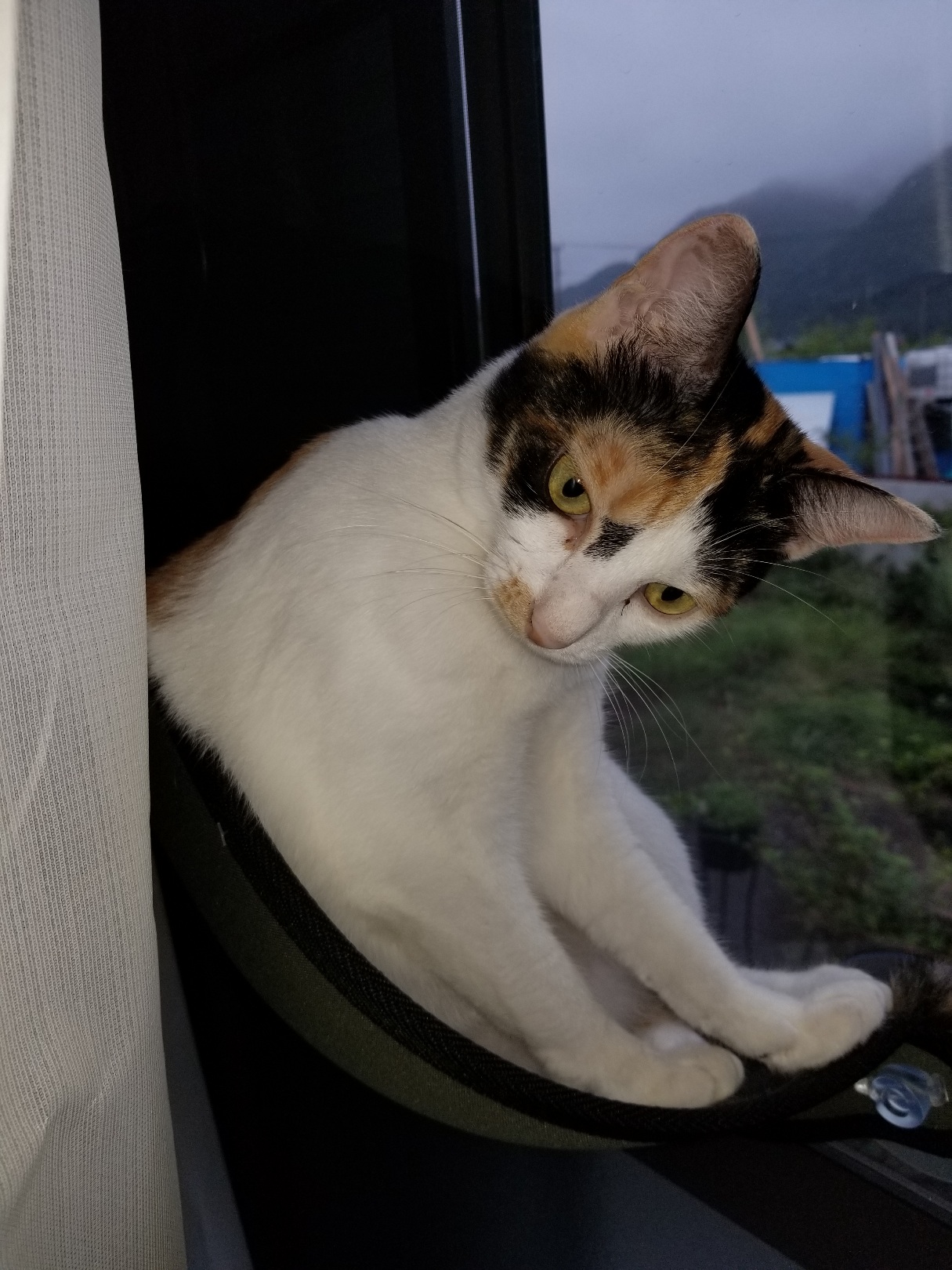 窓に取り付けたポケットから庭を眺め、小鳥に心躍らされる日々を過ごしています。