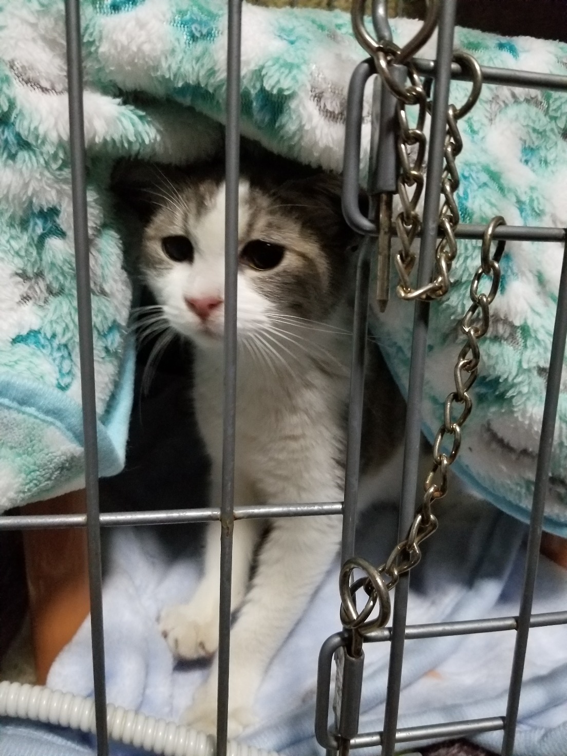 昨日の譲渡会でそんなお話を聞いて、アラン君も巣立ってゲージもちょうど空くしそれなら保護しましょうというはこびになりました。