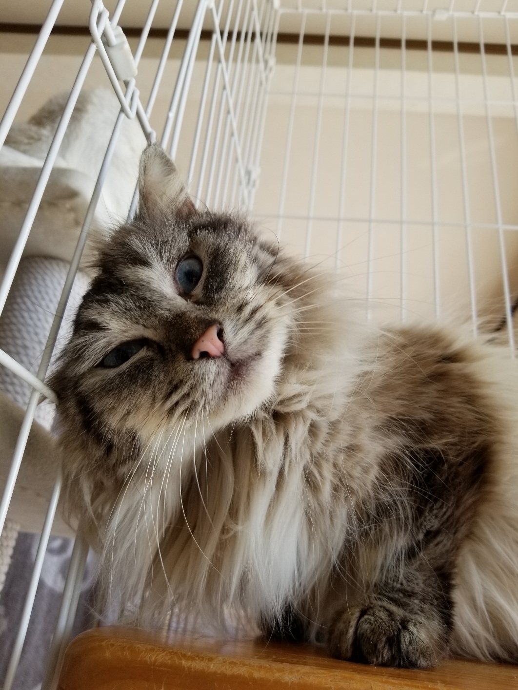 新しいおうちのゲージの中でクンクン探索中。