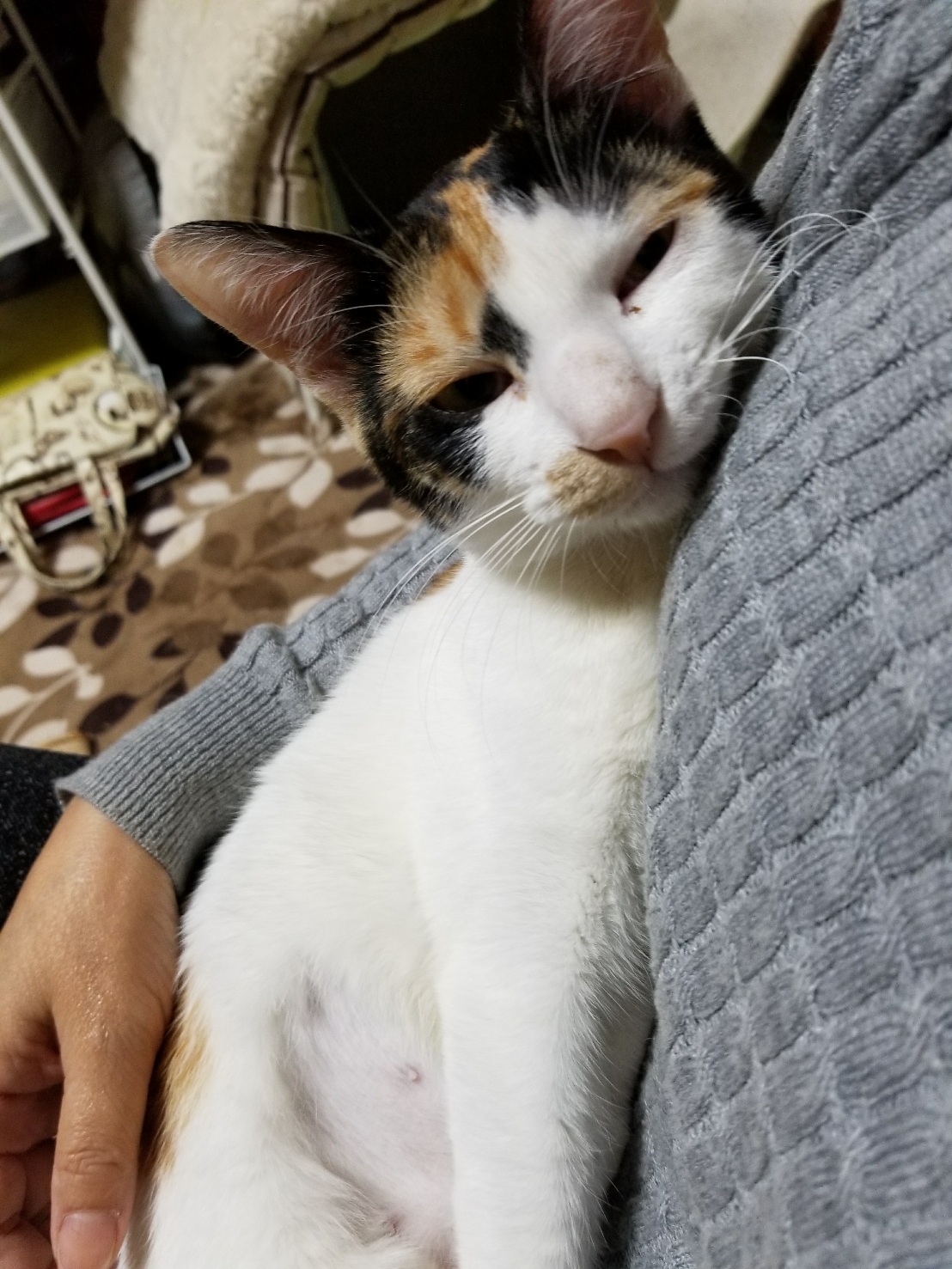 会社から帰ってから何となく私を避けていたようなごんですが、今は膝の上でゴロゴロしています。