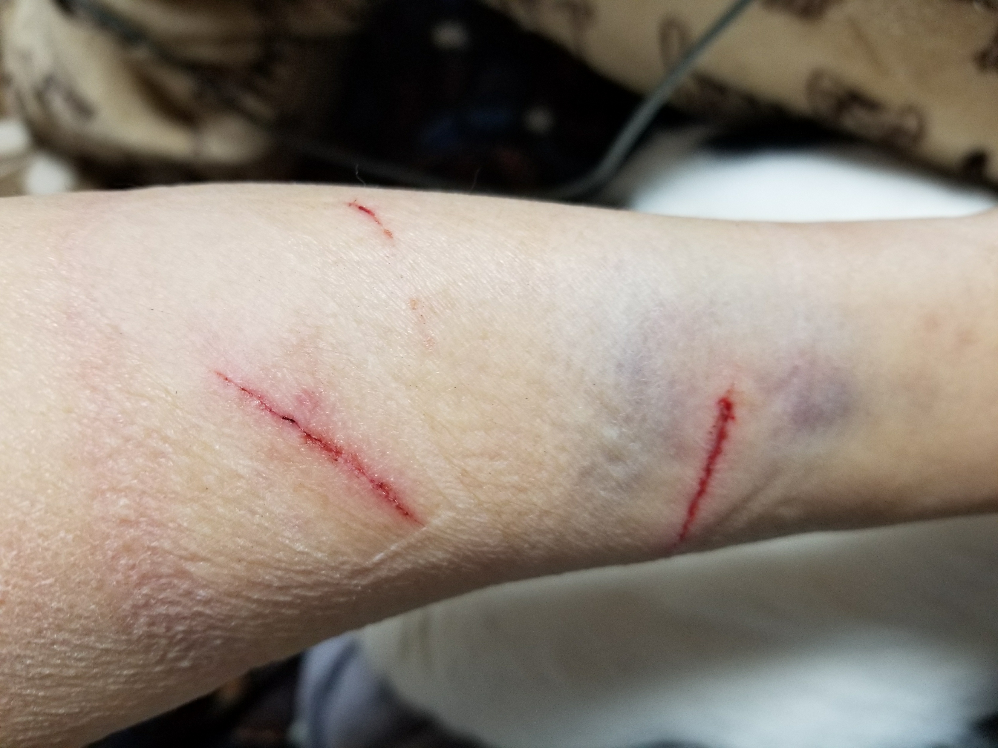 ごんを抑えようとしたところこちらに向かってきて腕に飛びつかれ引っ掻かれ噛みつかれで流血の事態に。