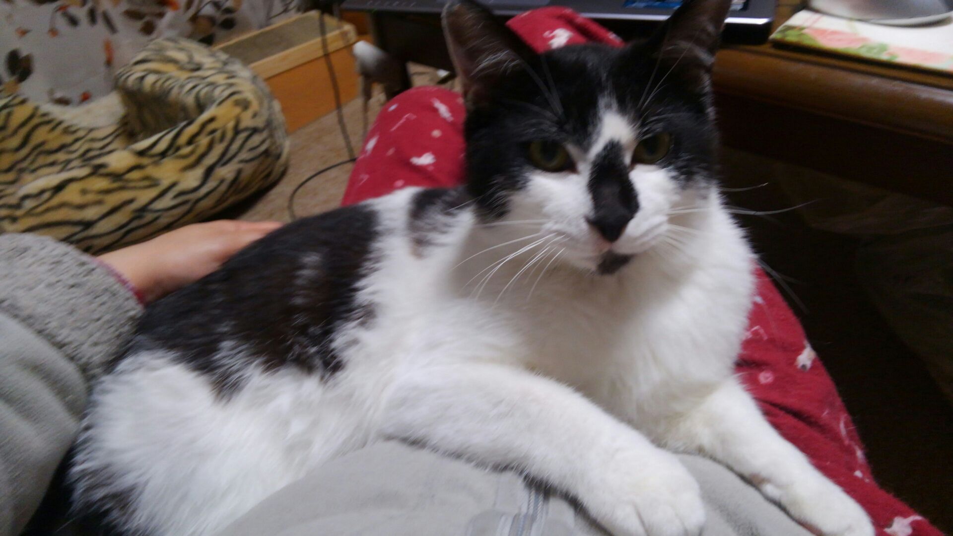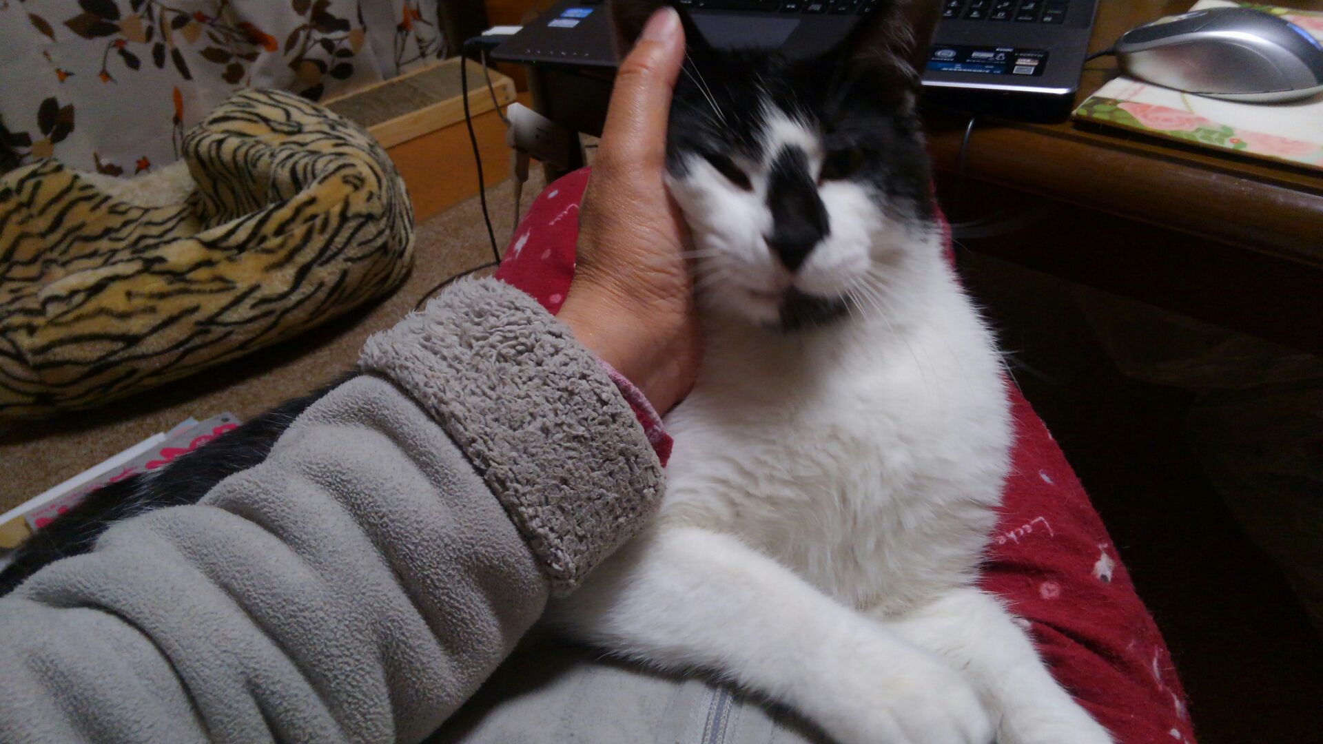 サンゴは膝の上に来て甘えることを覚えました。