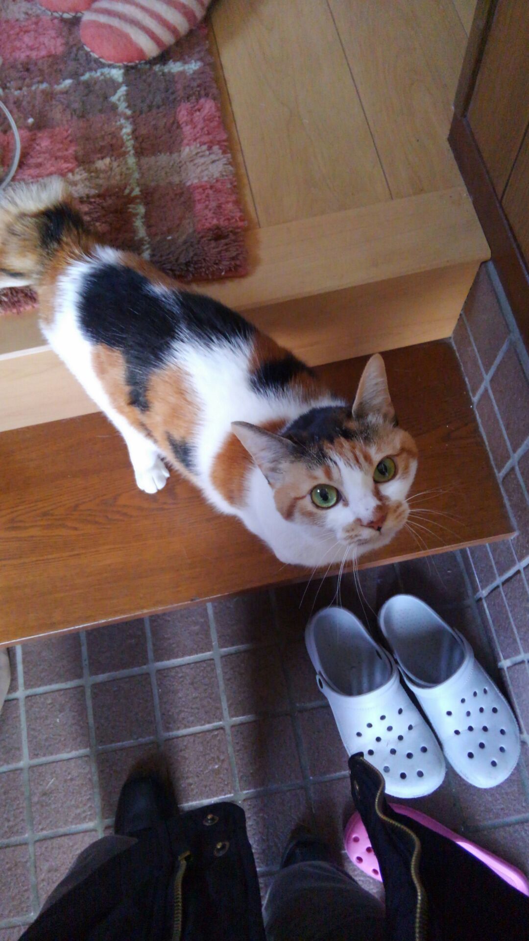 朝起きてドアを開けると、こんな風に3人で待ち構えています。