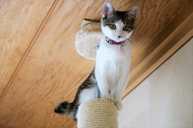 最初は興味津々に部屋を探索していましたが、ようやく家猫らしく落ち着いて