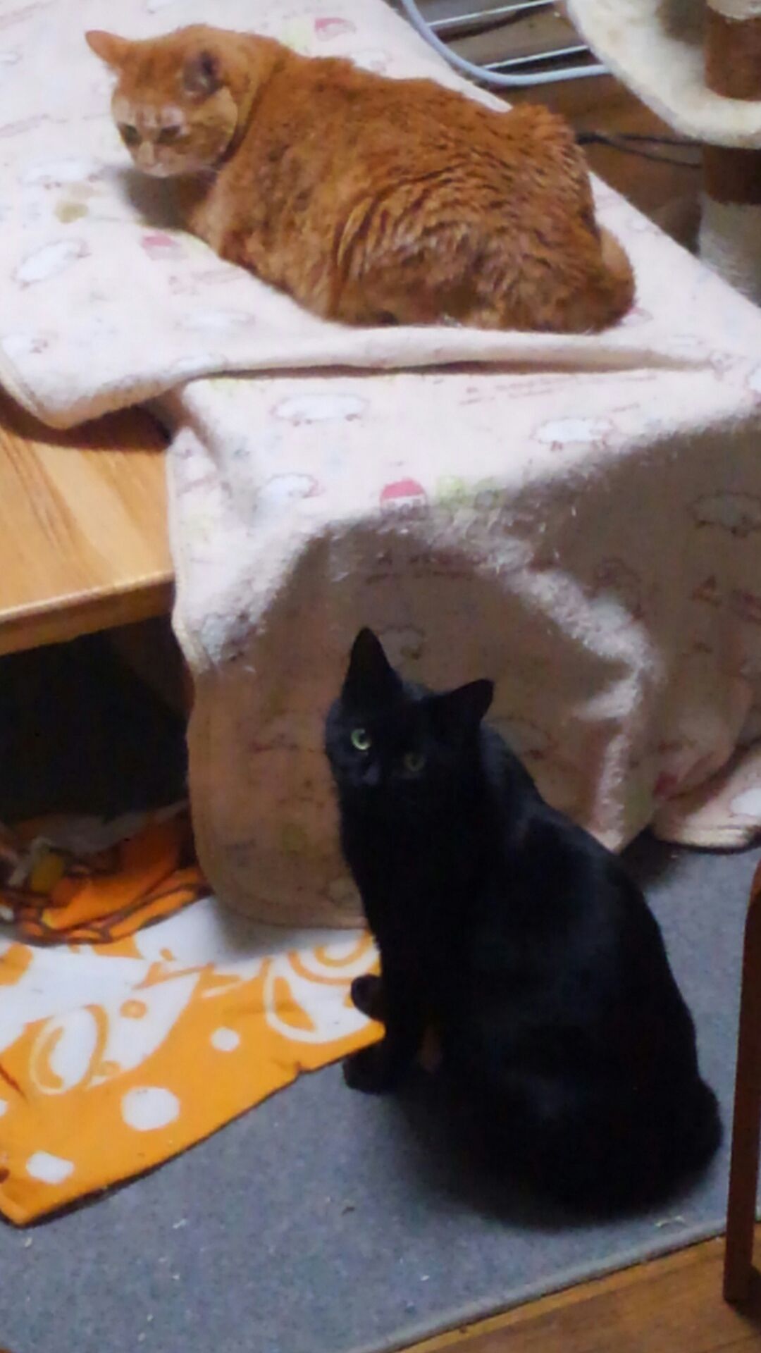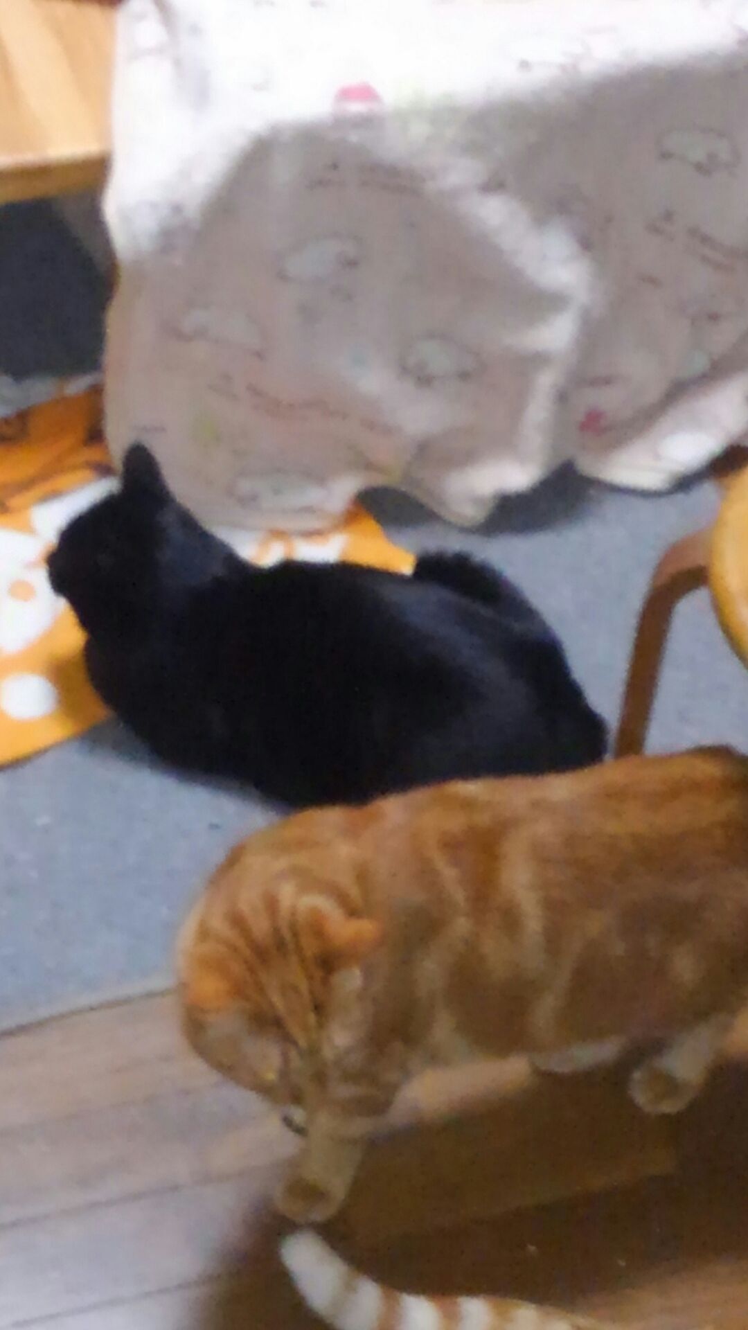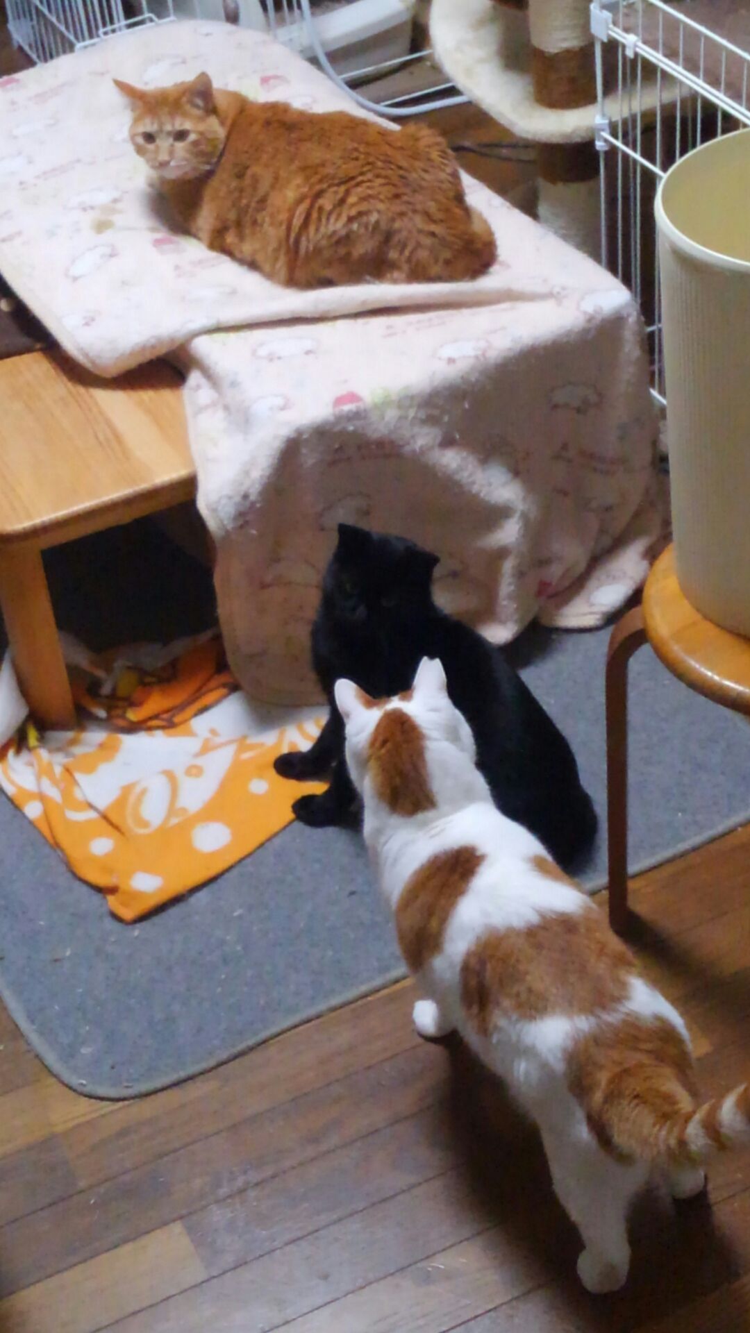 私が部屋に入ると、クロちゃんはこたつの上でみんなと同じ空気を吸ってます、的な雰囲気を一変させてこたつの中にもぐってしまいます。