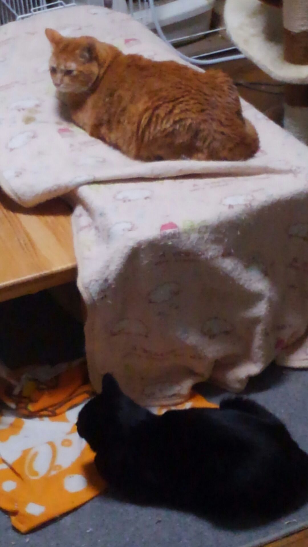 クロちゃん寒い寒いこの冬を何とか頑張って外で乗り越えてきたから、猫こたつの快適さにはまってしまったようです(笑)