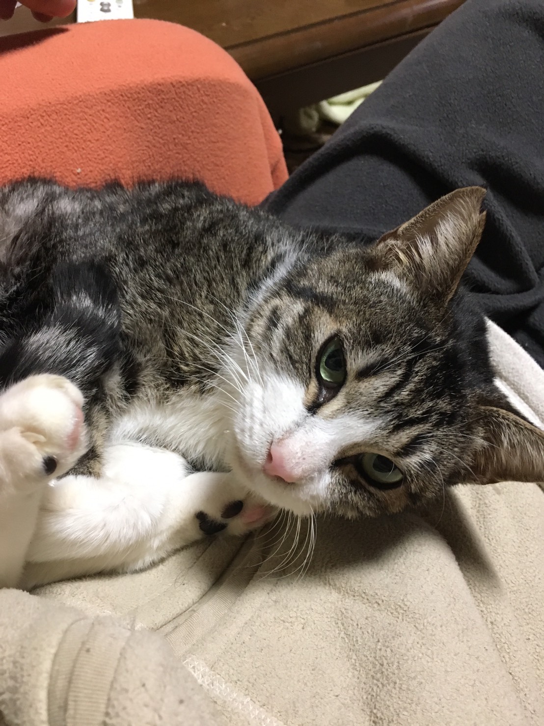 あらら・・・・・撫でると腰抜けてごろんごろん、お手てフミフミ❤