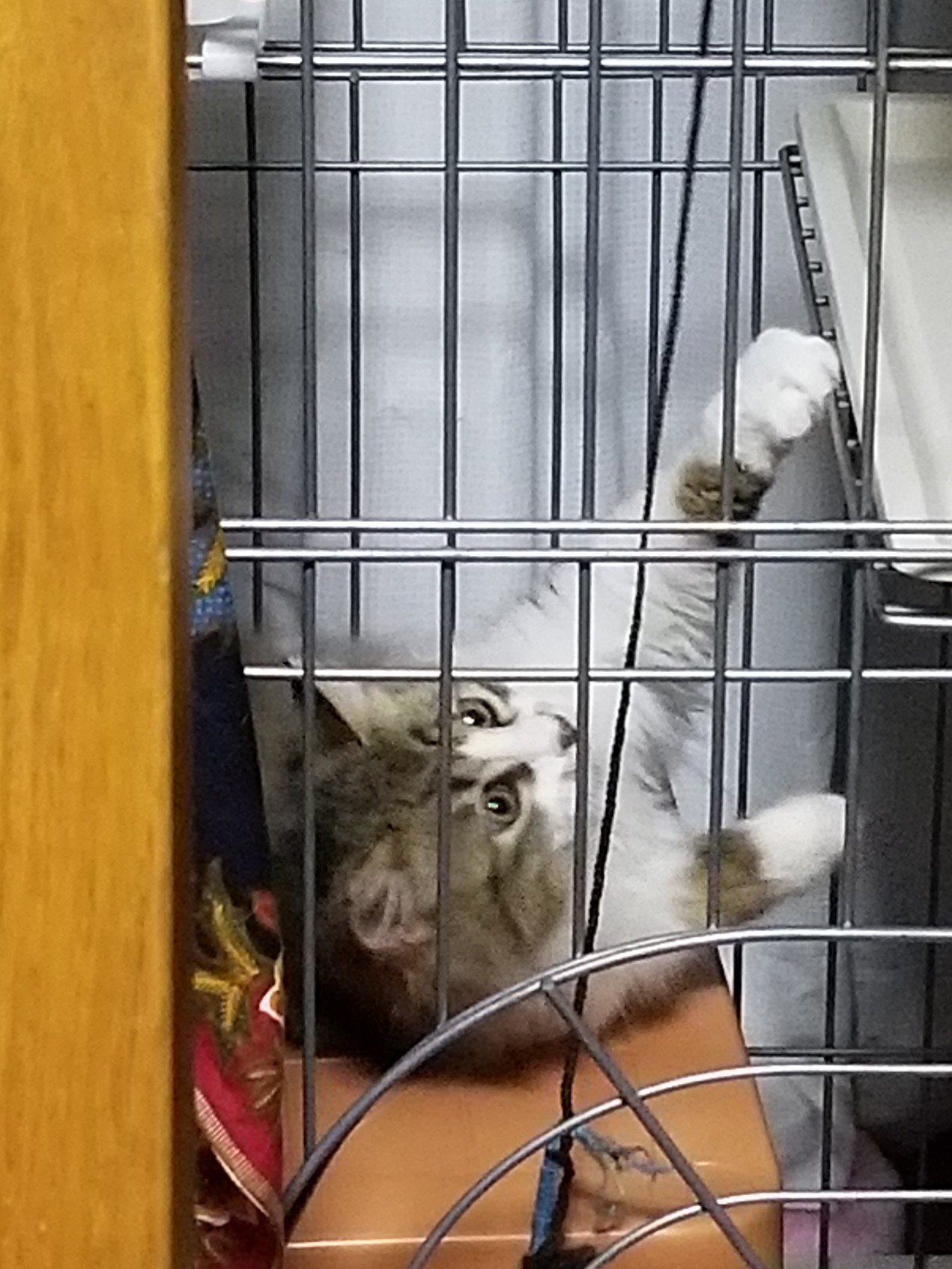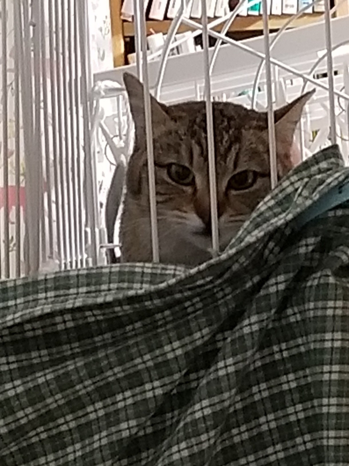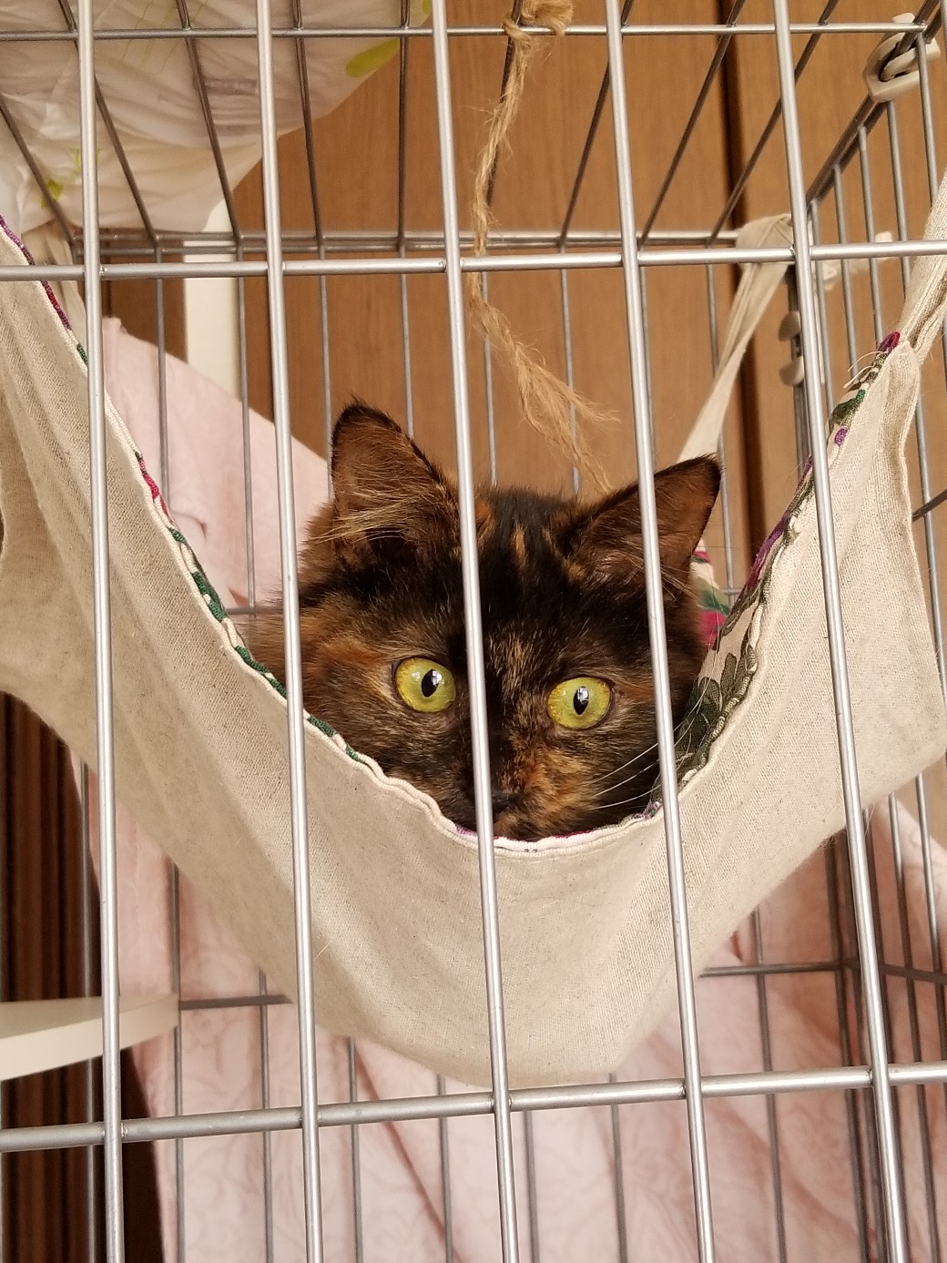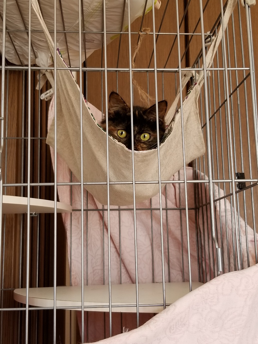 チーちゃん(和香ちゃん)のいた私の寝室のゲージにいます。