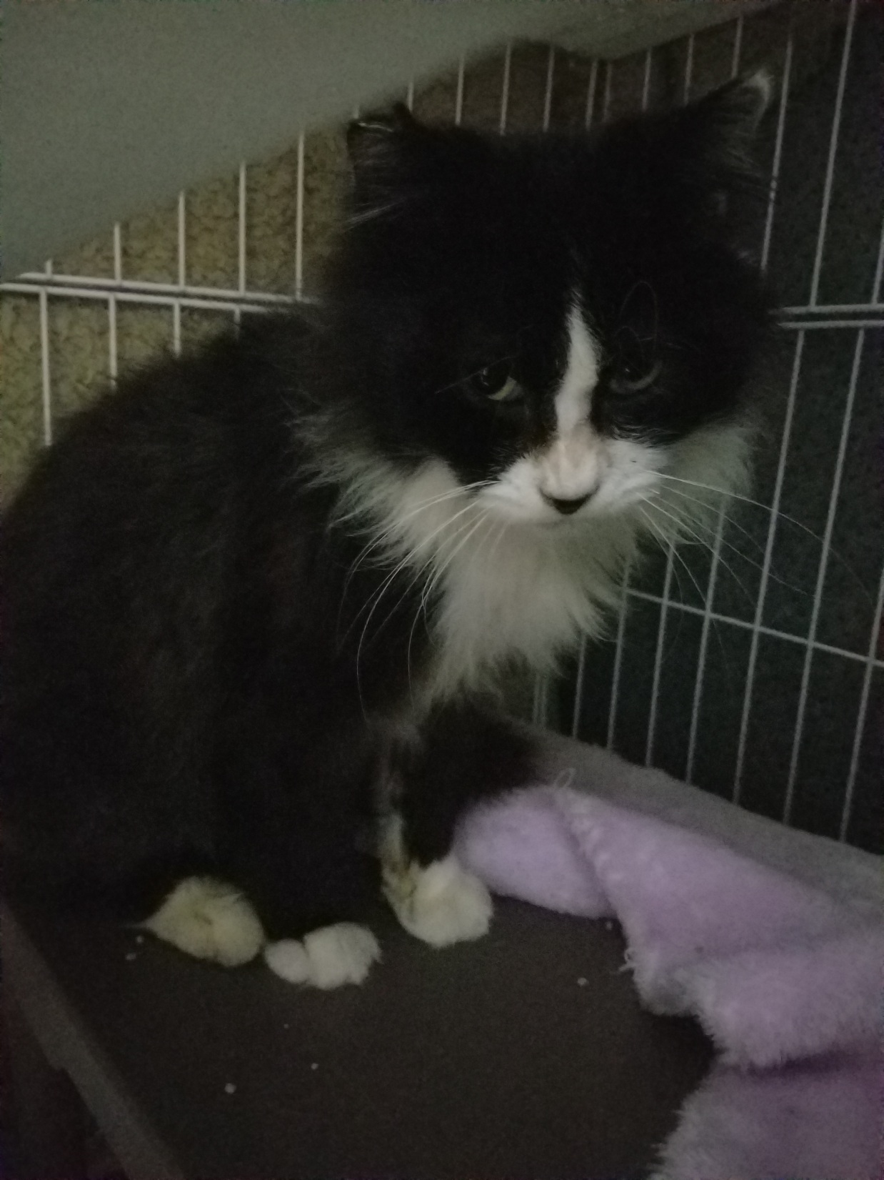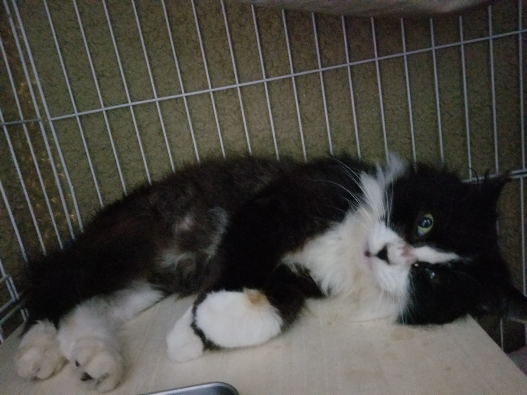 猫アレルギーのご家族がいて引き取ることができず、息子さんがご飯をあげに日に一度通っているそうです。