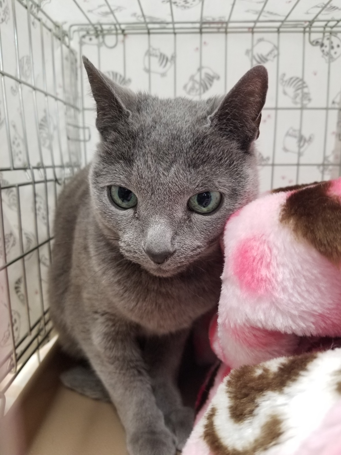 突然のご病気で入院し残された13歳のロシアンブルーの女の子が家に一人で過ごしているそうです。