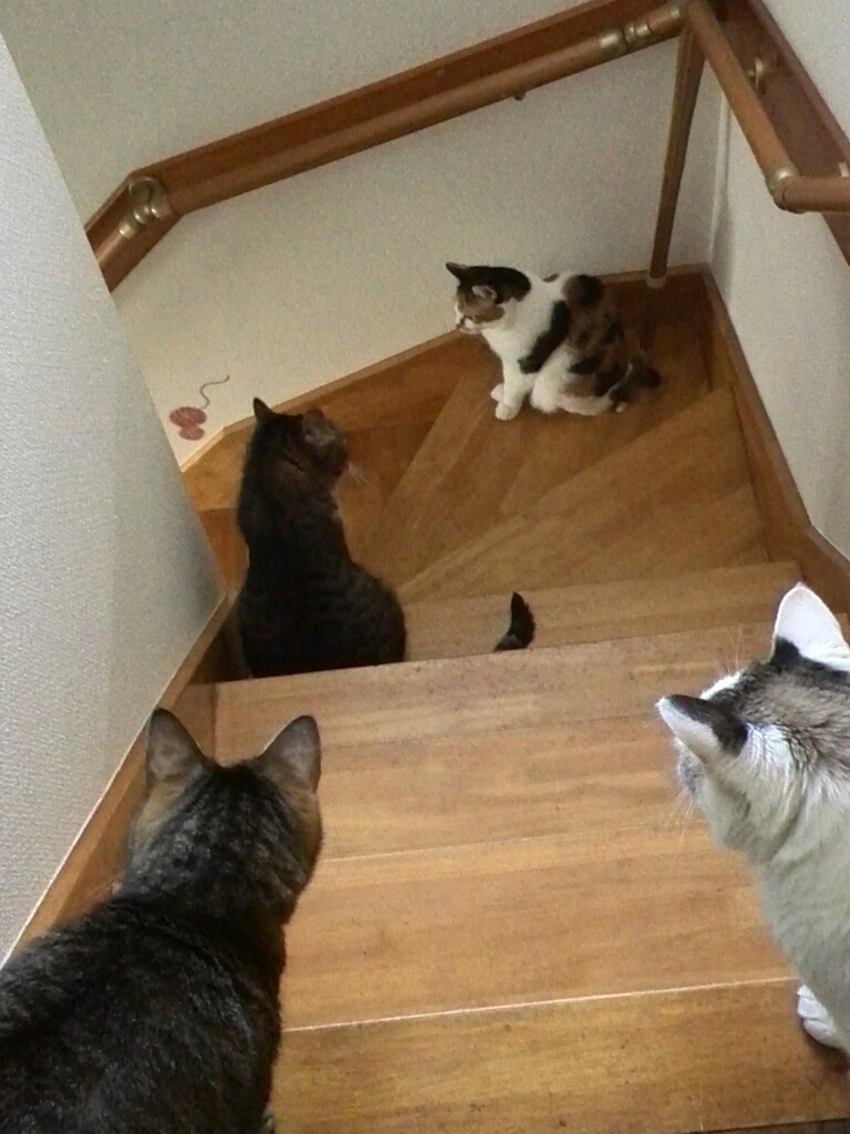 昼と夕方帰宅して私の声が聞こえると階段を下りてきます。