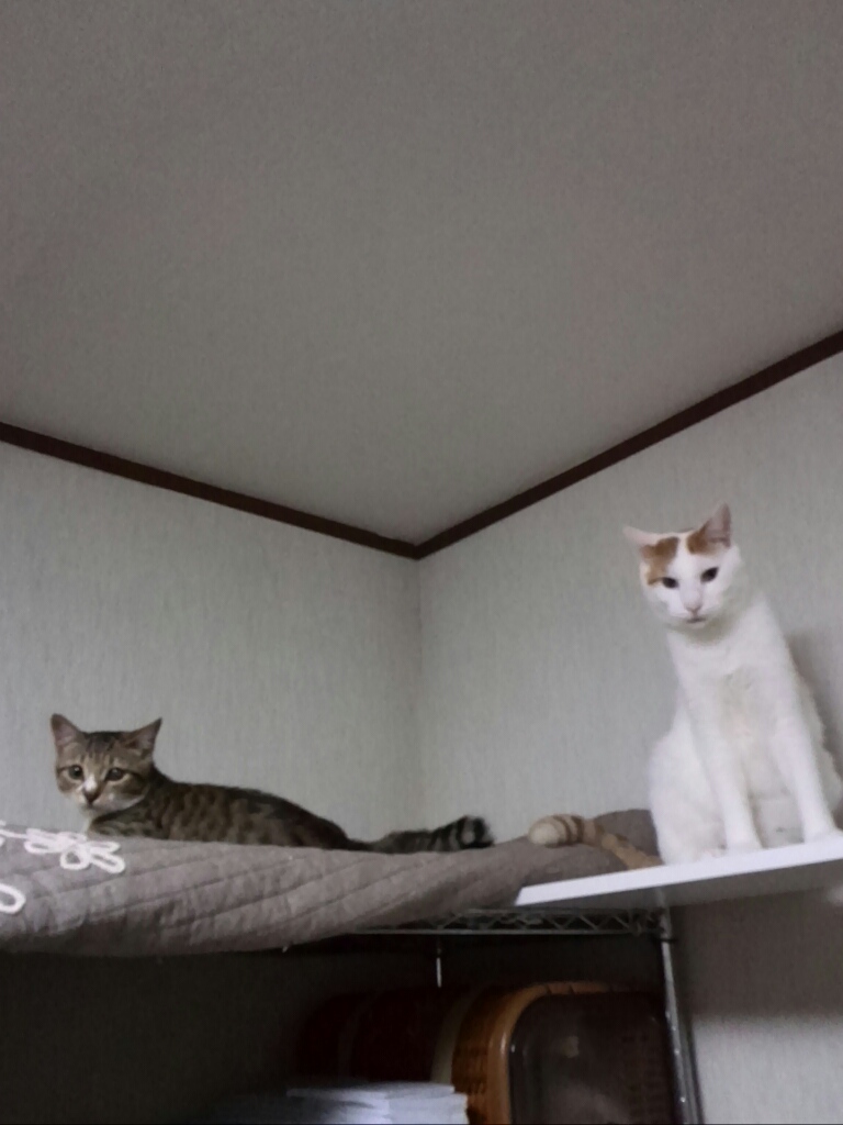 でもこれだけの猫との暮らしは窮屈なのか、ケージから出したところ小屋裏に入り浸りです。