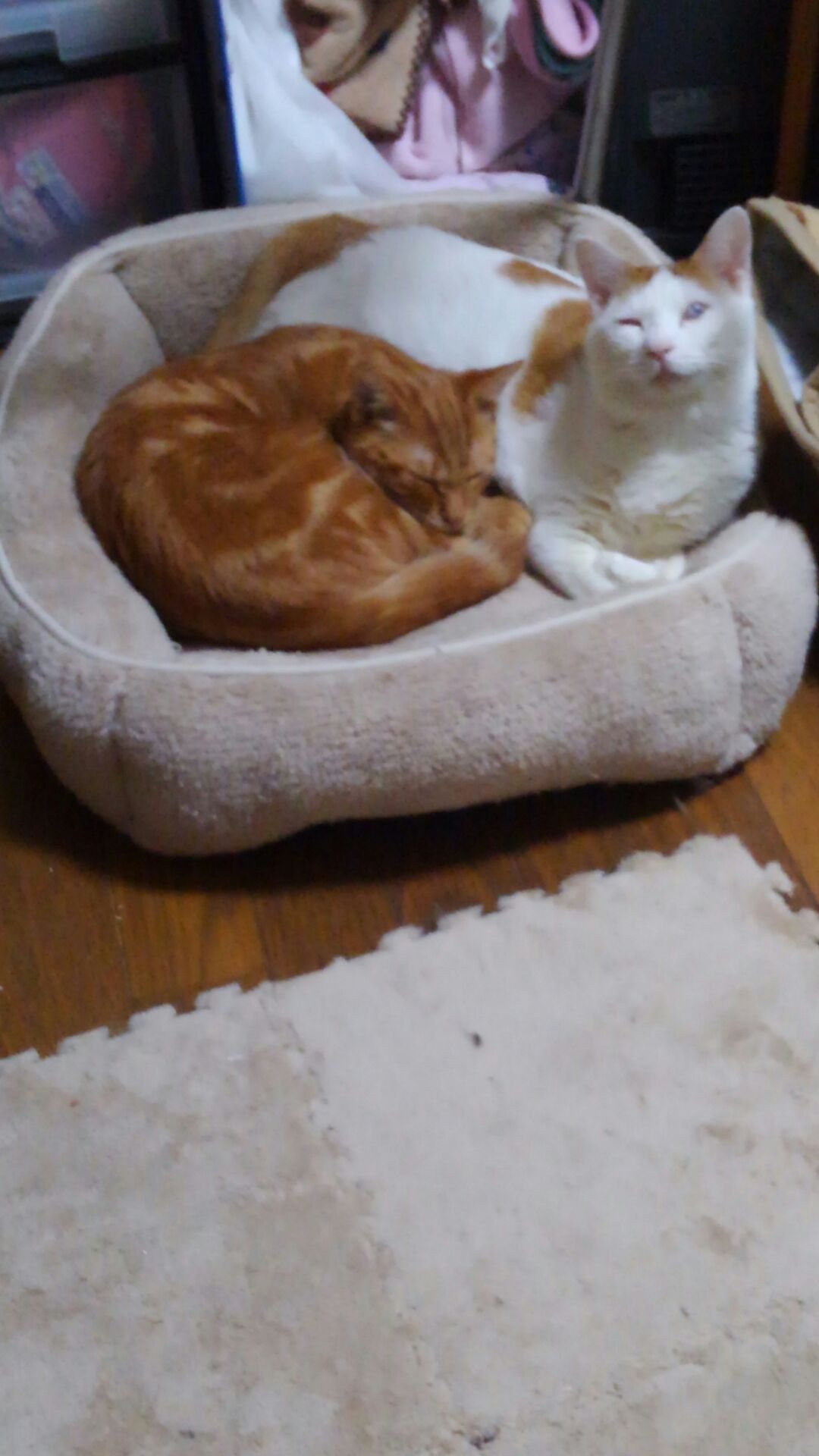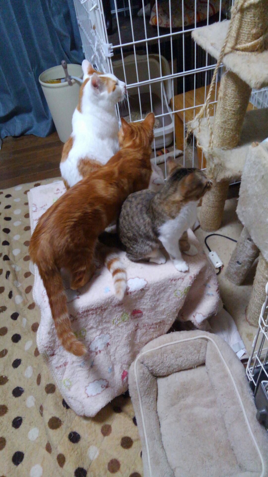 同室の4匹の猫、川崎団地からのコロ助やちゃこ、川尻ノラさん子猫のえりんやちゃぴとも