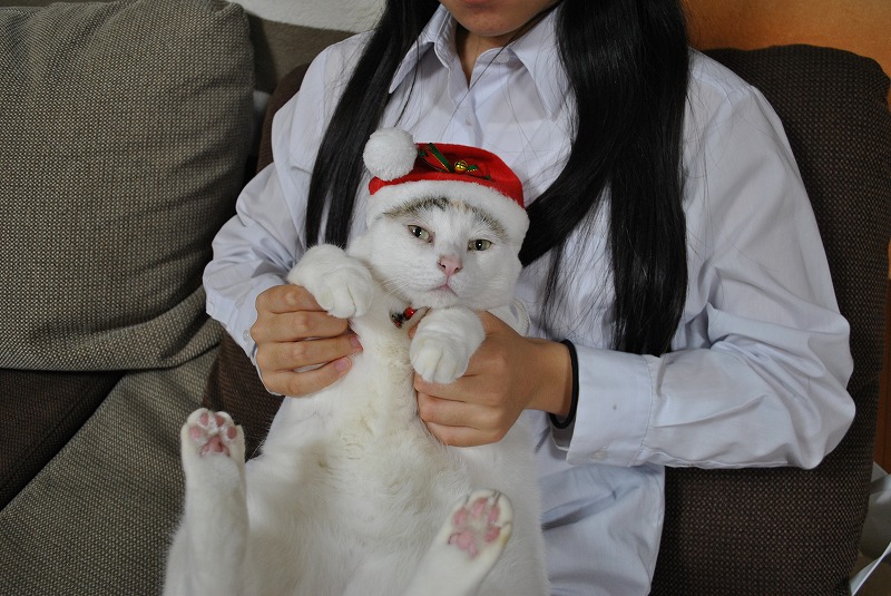 お嬢さん方はサンタさんのコスプレで「ハイ、チーズ!!」