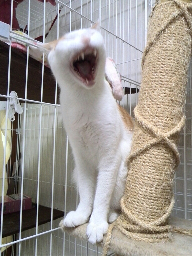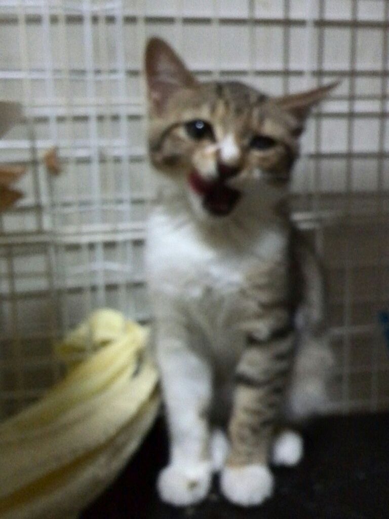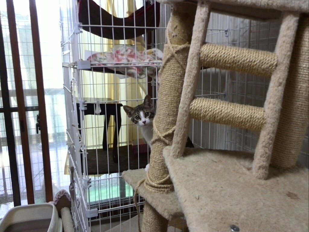 ゲージの中でみゃあみゃあと鳴くことが多く、私を見ると未だ固まる!