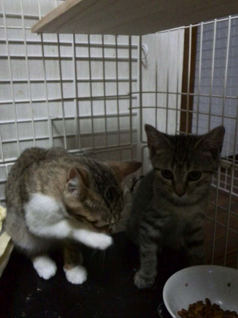 他の兄弟3匹と別のママの子3匹はえさやりさんのところのゲージにいます。