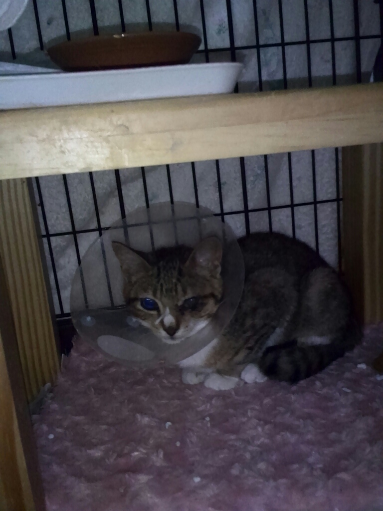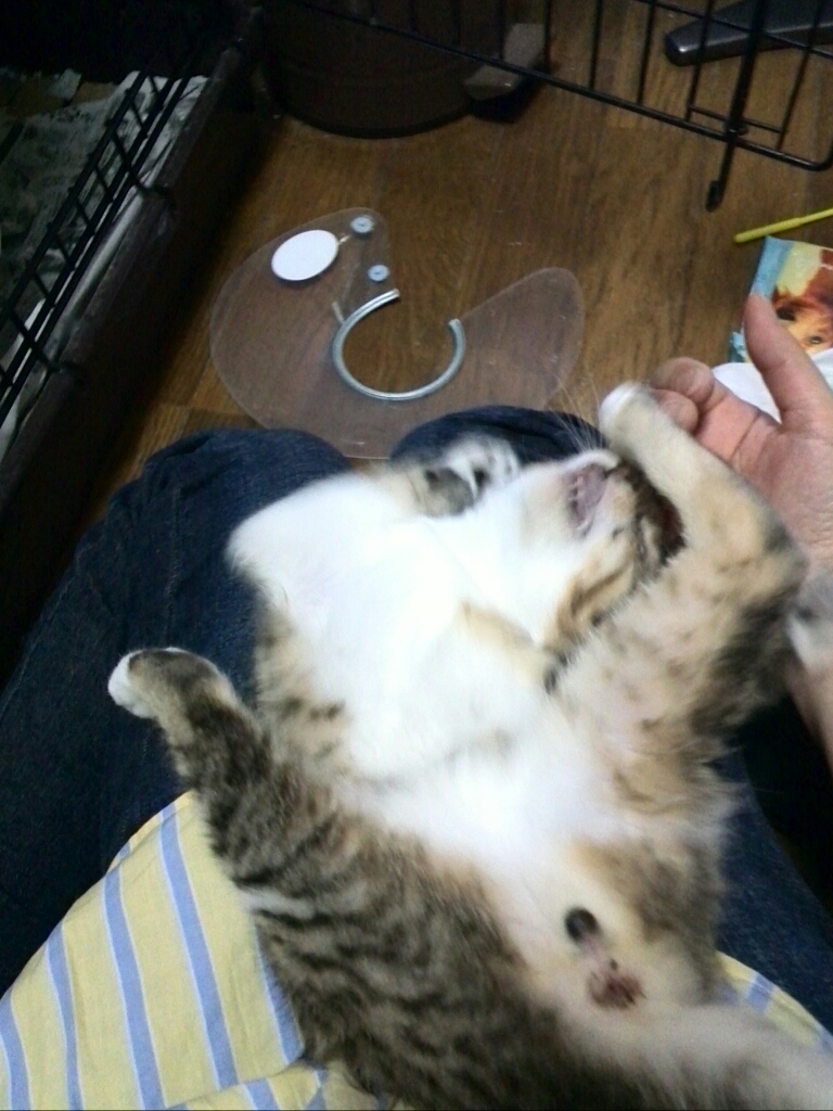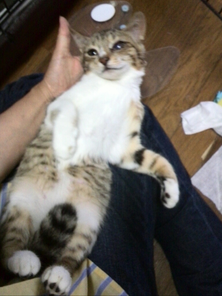 まだカラーは付けていますが、朝晩のご飯タイムのあとはカラーを外して膝の上で甘えてから