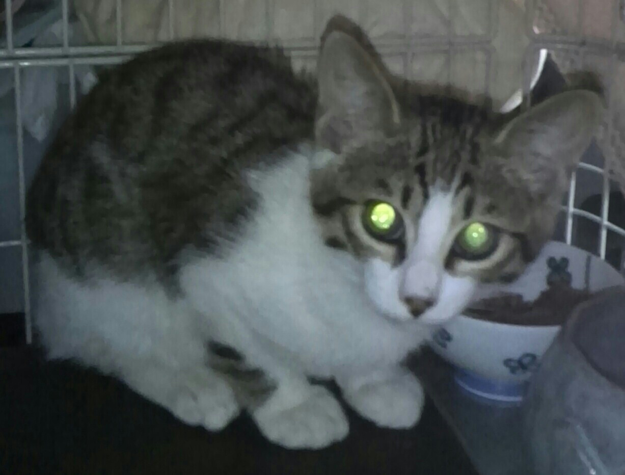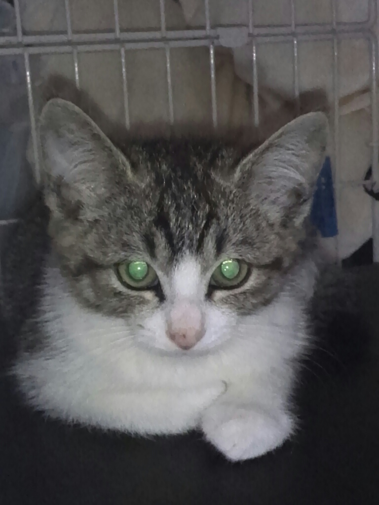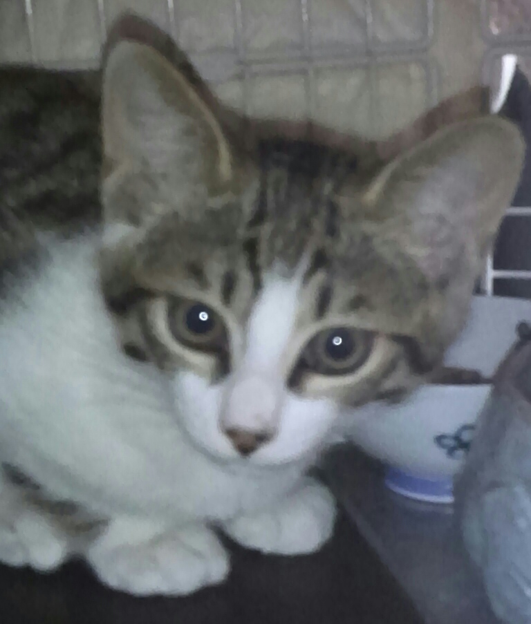 市内の某所でママと野良さん生活をしていましたが、えさやりさんが行く末を見かねて市の相談会に行き捕獲した子猫です。