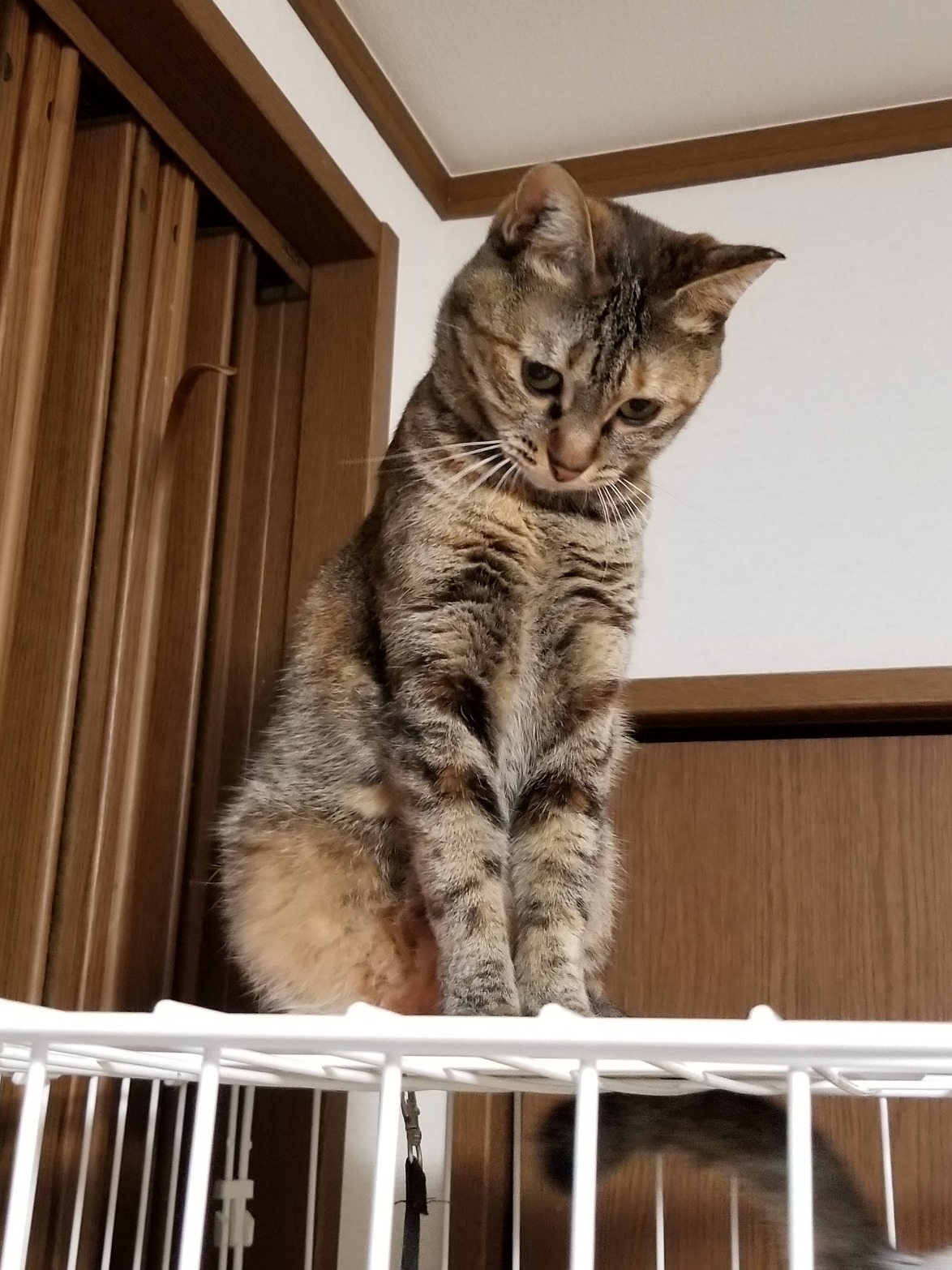 ママ猫の和香ちゃんは夜鳴きが激しく、2週間ゲージ暮らしを経てきのうの日曜からゲージの扉を開けて自由にさせています。