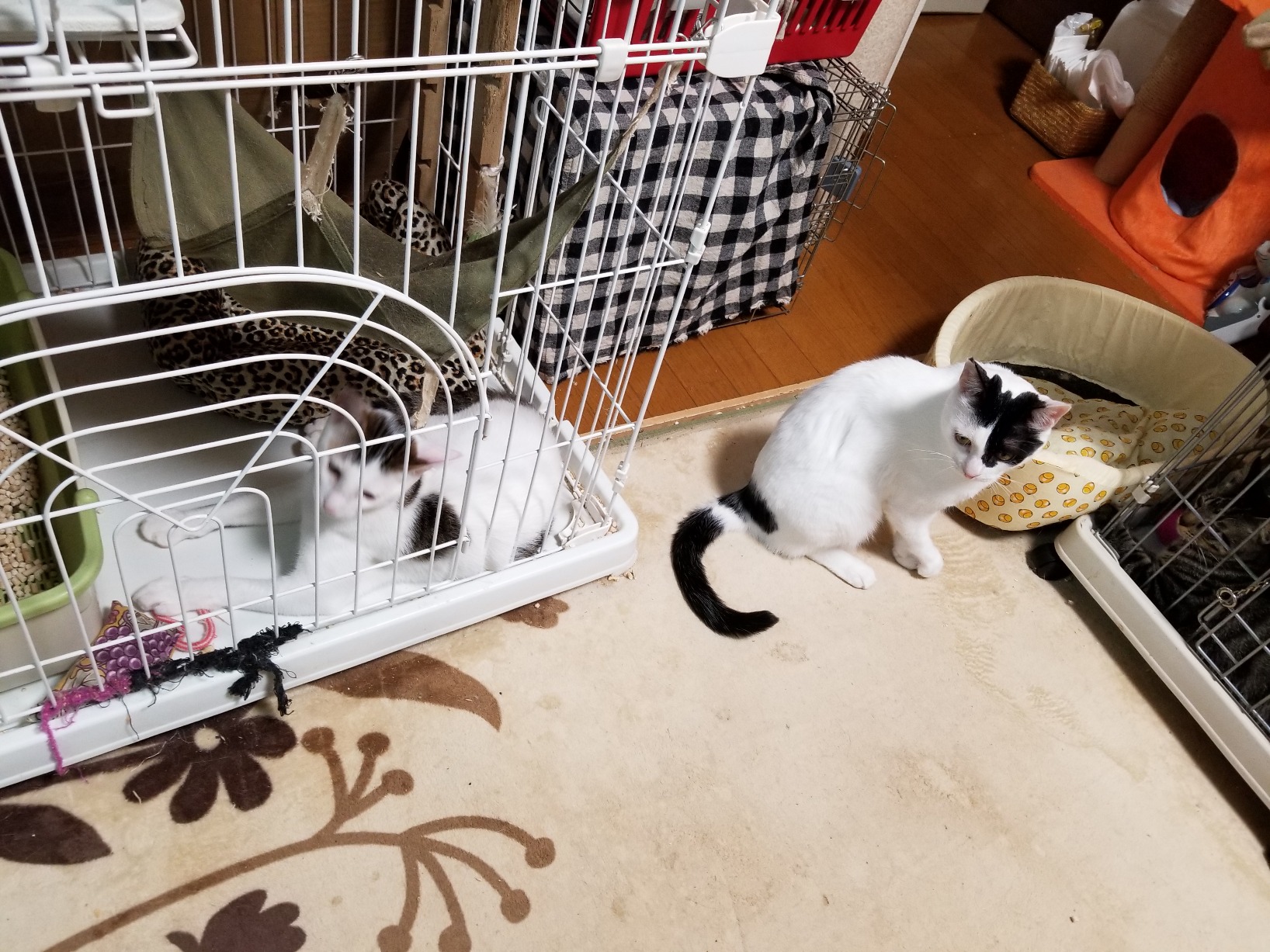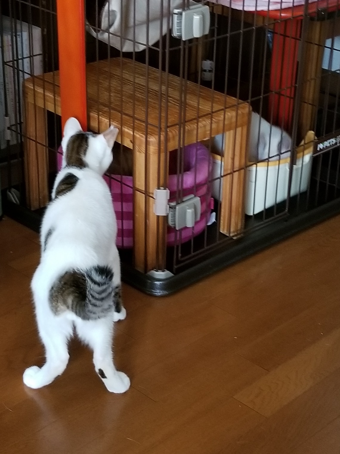 お部屋デビューはまだ早いので可哀想ですがもう少し辛抱。