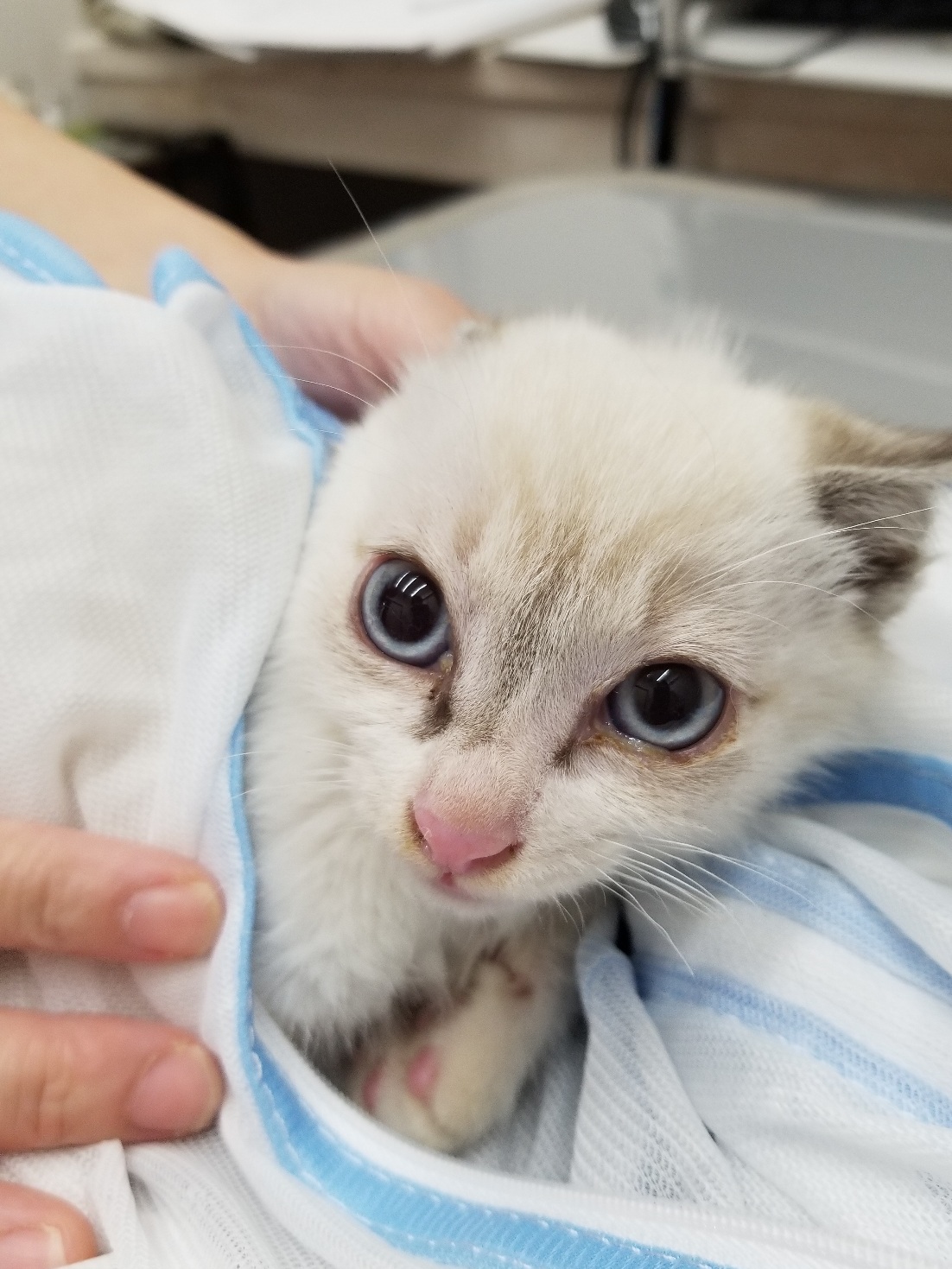 リムちゃん、デニ君は眼科専門医に診てもらって抗ウィルス薬を服用し今日経過観察に受診します。