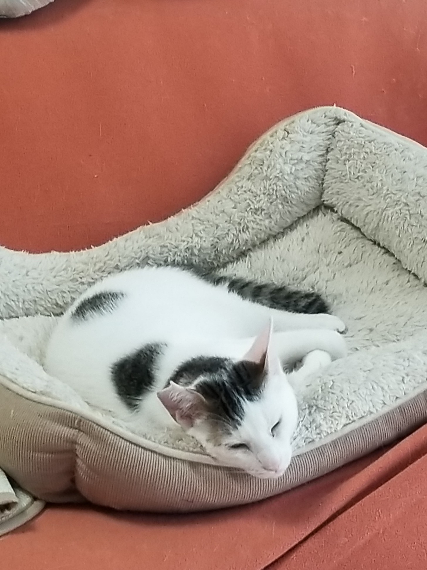 ソファでのんちゃんがまぶしい寝しています。