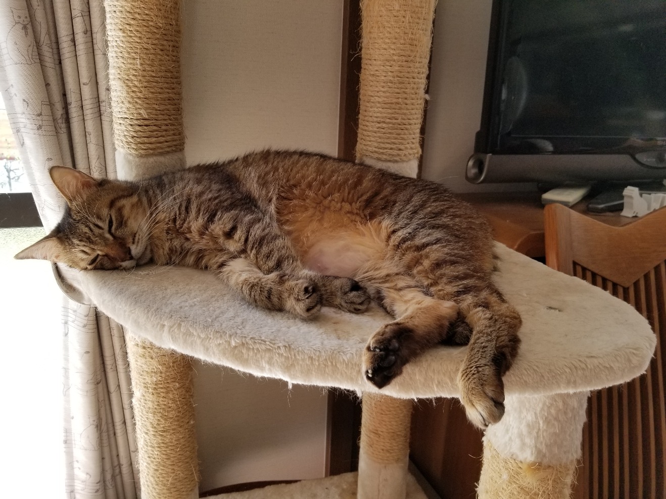 キャットタワーではごんが奔放寝