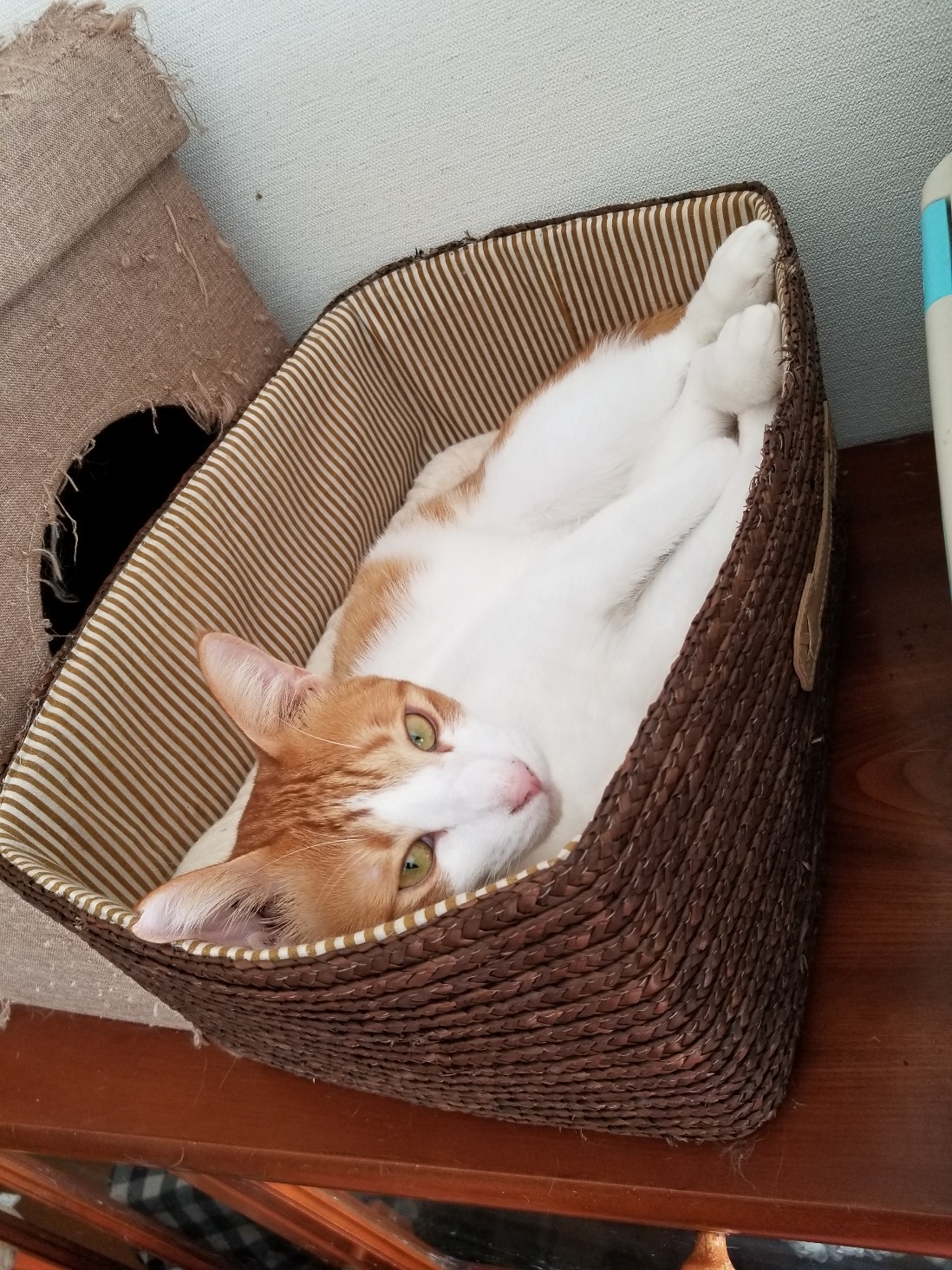 琥珀は狭いところが好きなんです。