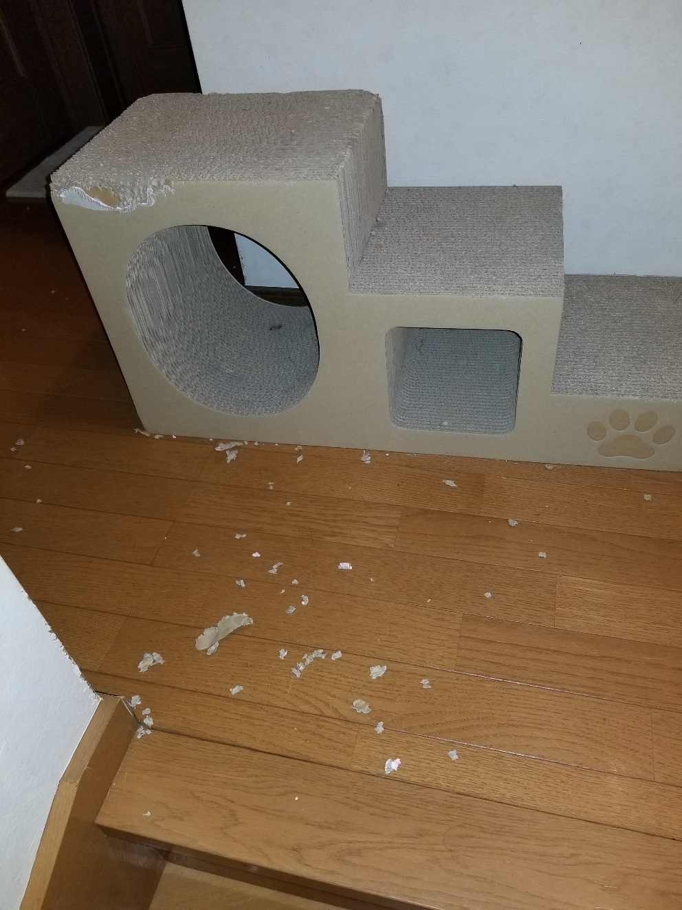 こうしてかじっちゃあゴミを廊下に散らかすのがうれしいのかな?