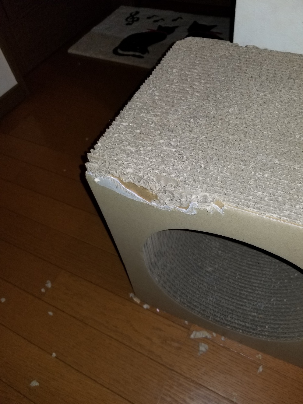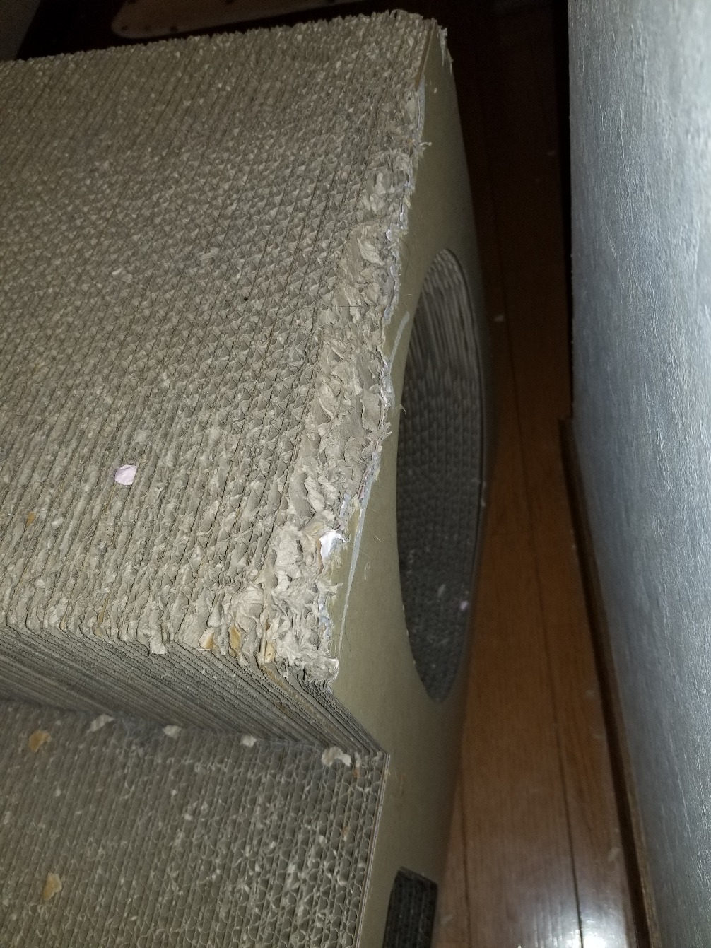 いただいた段ボールの爪とぎはこんなにされました。