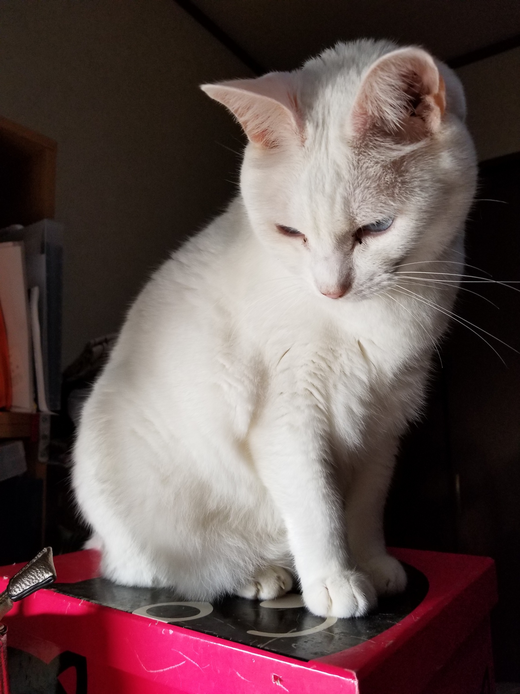 とにかく甘えっ子で膝に乗っては自分の肉球を吸っている子です。