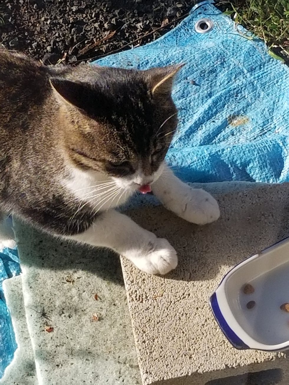 裏の農家さんに住みついていたママ猫を避妊去勢してから、そのママ猫みいちゃんが庭にご飯を食べに来るようになりました。