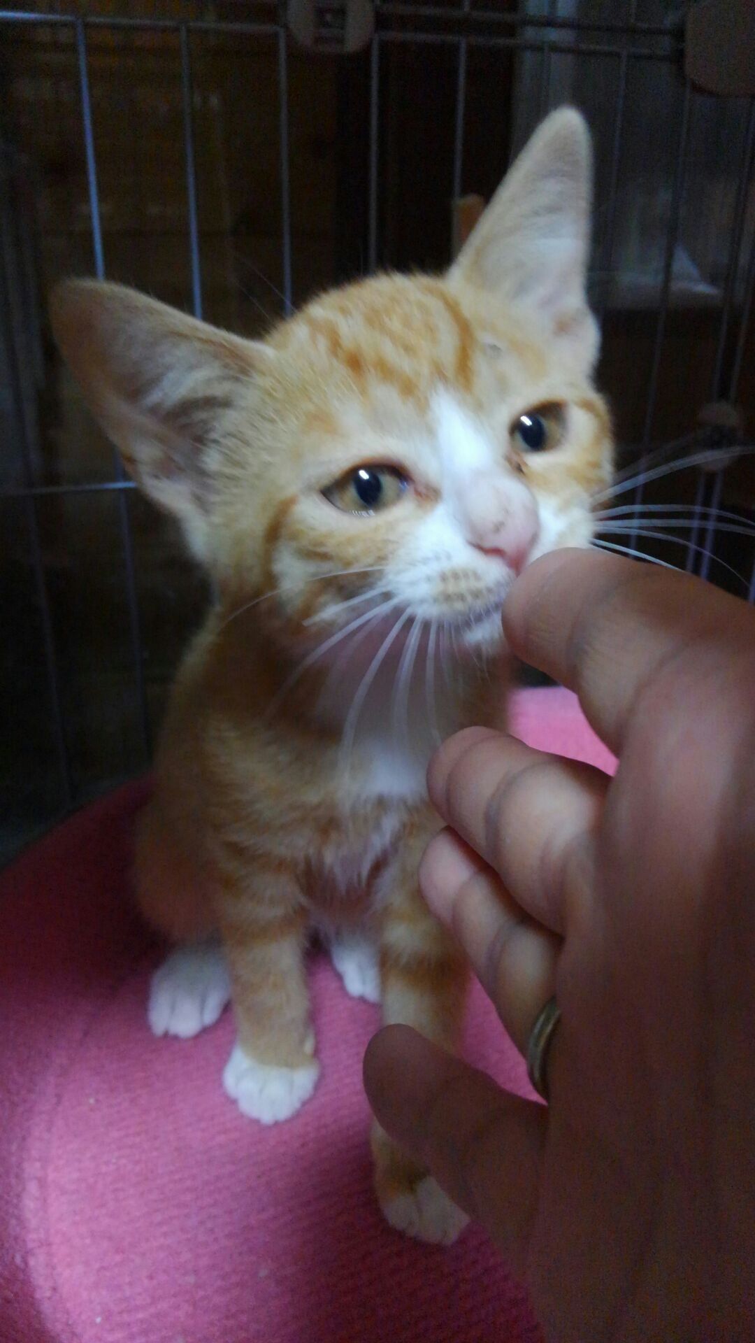 美虹ちゃん、逃げ惑うばかりでなでなでもチュールも無理です。