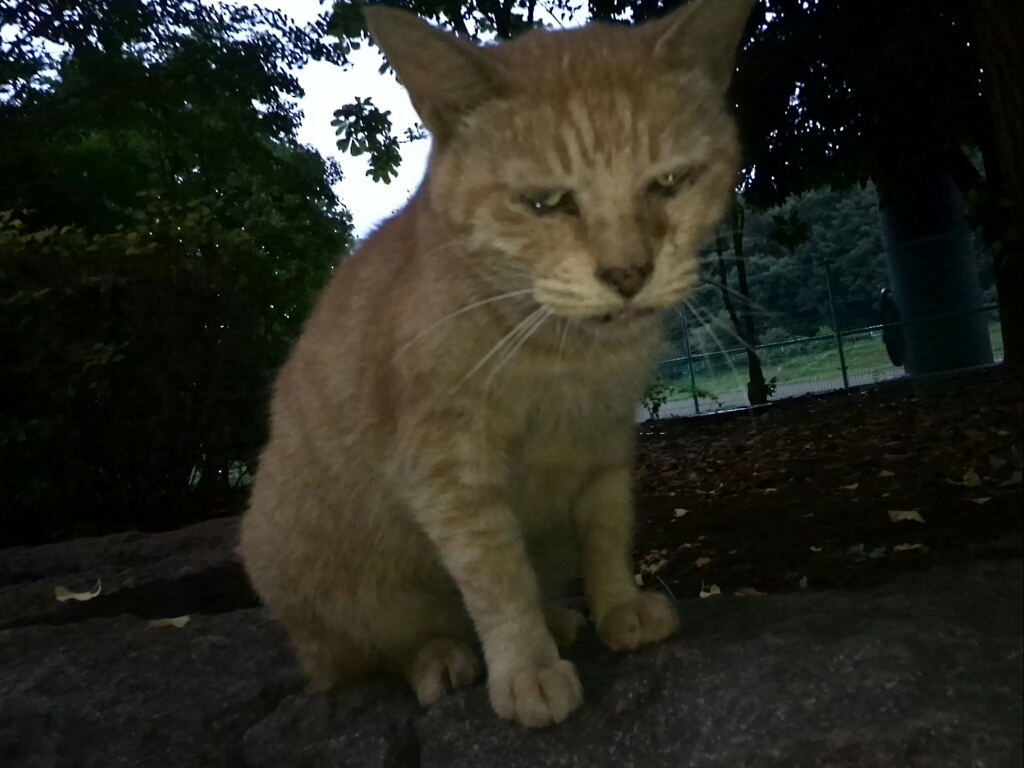 所用があり公園に車を停め、歩いているとにゃあにゃあと親しげに近づいてくる茶とらのにゃんこさん。耳カットしてある男の子。見た目かなり高齢?