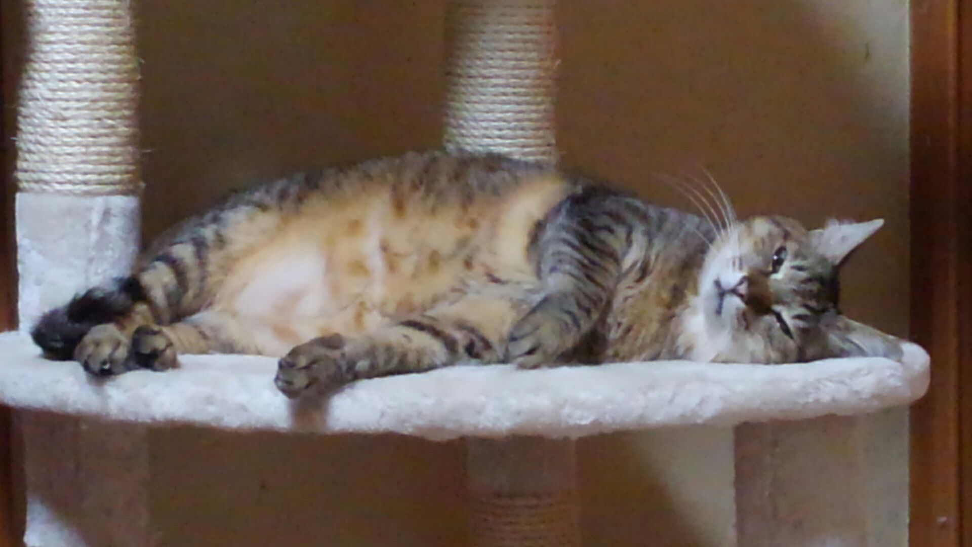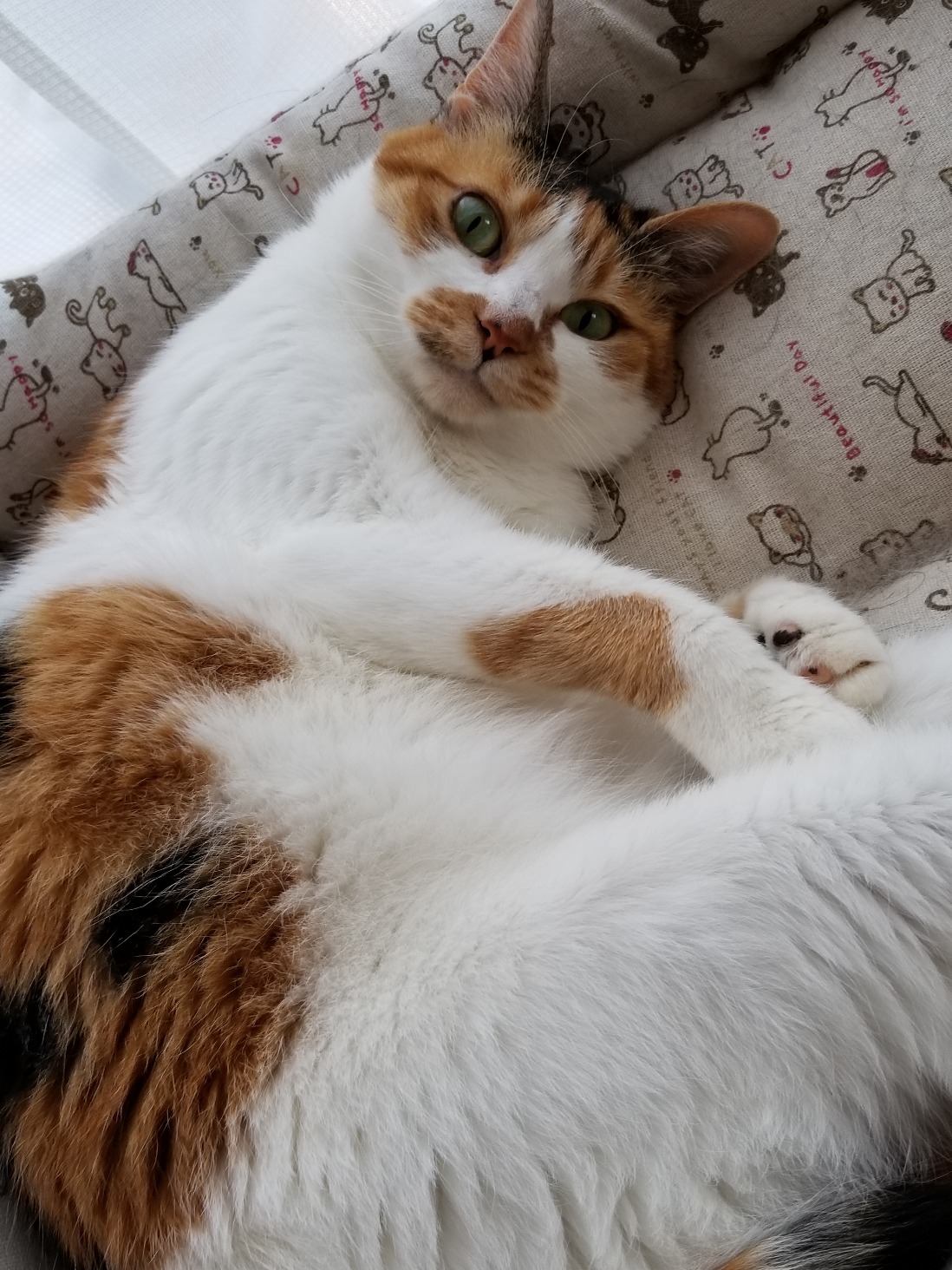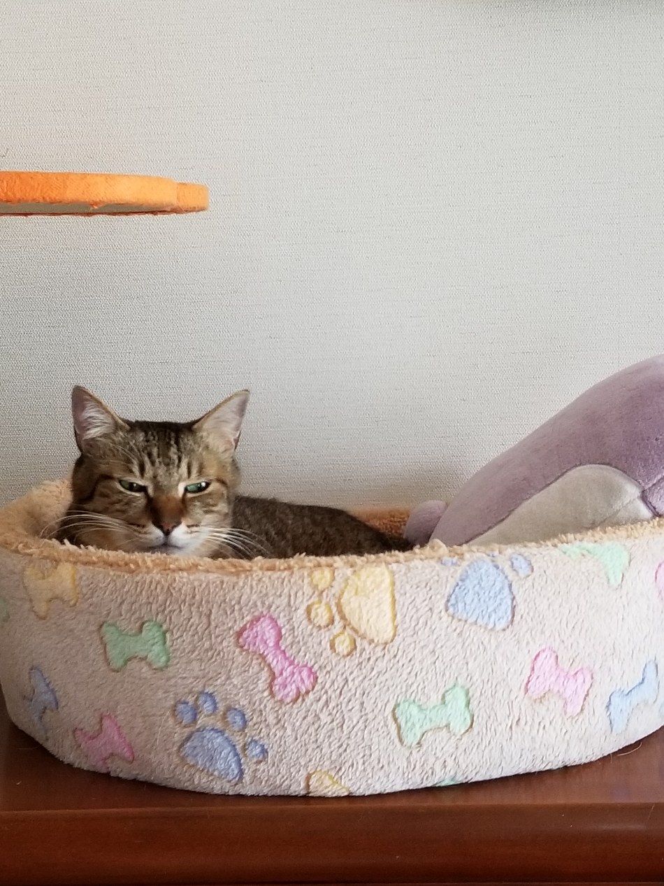 昼間もノビノビとベッドで寝ています。